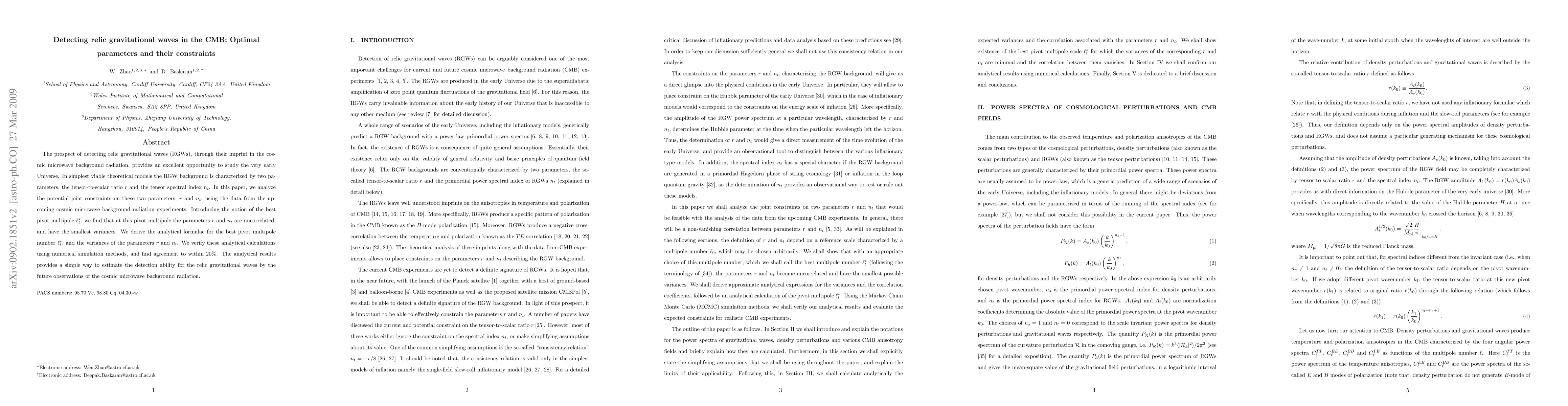 This paper investigates optimal parameters for detecting relic gravitational waves in the cosmic microwave background (CMB), focusing on the tensor-to-scalar ratio $r$ and the tensor spectral index $n_t$. It introduces the best pivot multipole $\ell_t^*$ where these parameters have the smallest variances, providing analytical formulae for $\ell_t^*$ and the variances, verified through numerical simulations.