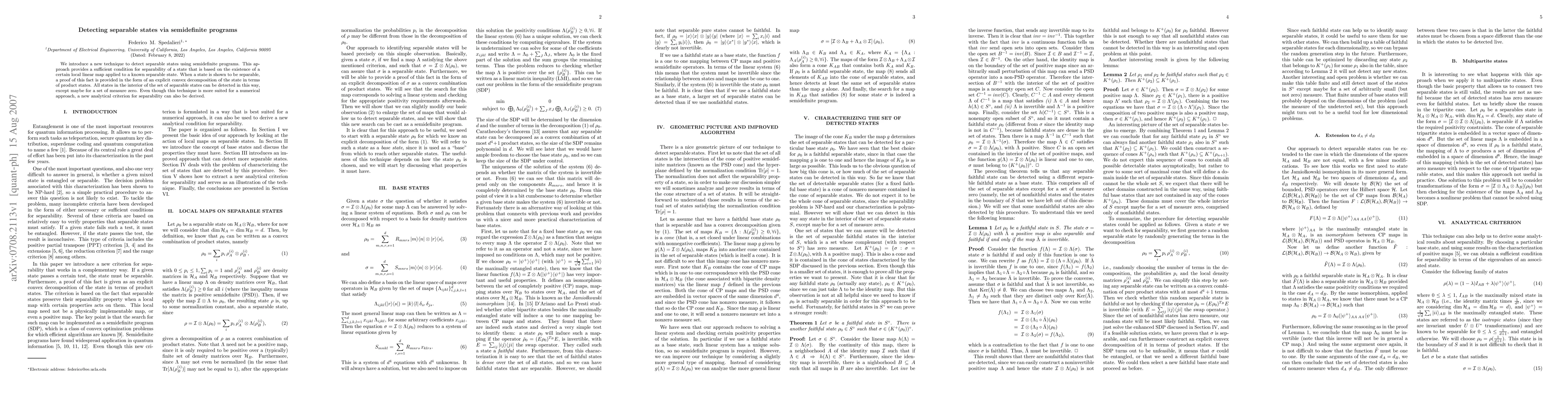 This paper presents a novel method for detecting separable quantum states using semidefinite programs, providing a sufficient condition based on local linear maps. It offers an explicit convex decomposition of separable states and can analytically derive a criterion for separability, applicable both numerically and analytically.
