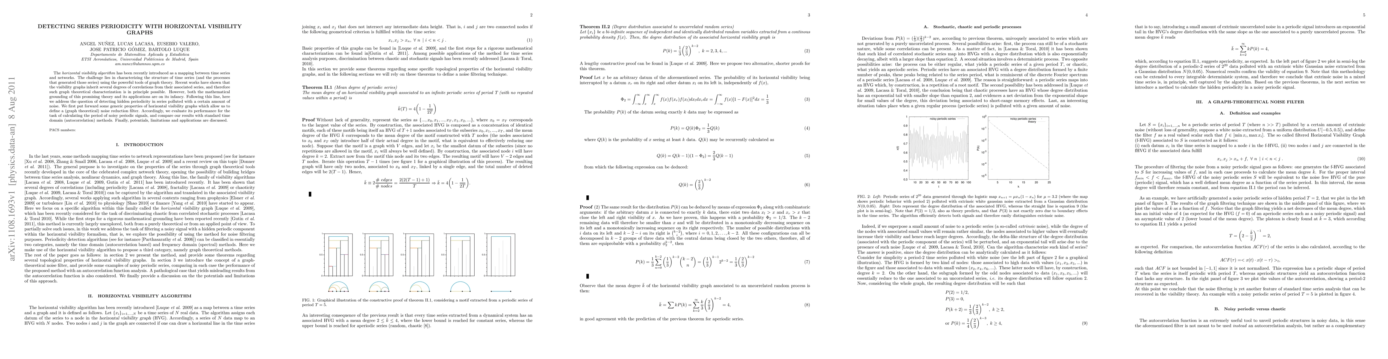 This paper introduces the horizontal visibility graph algorithm to detect periodicity in noisy time series data, proposing a graph theoretical noise reduction filter. It evaluates this method's performance in estimating the period of noisy periodic signals, comparing it with traditional time domain autocorrelation methods, and discusses its potential applications and limitations.