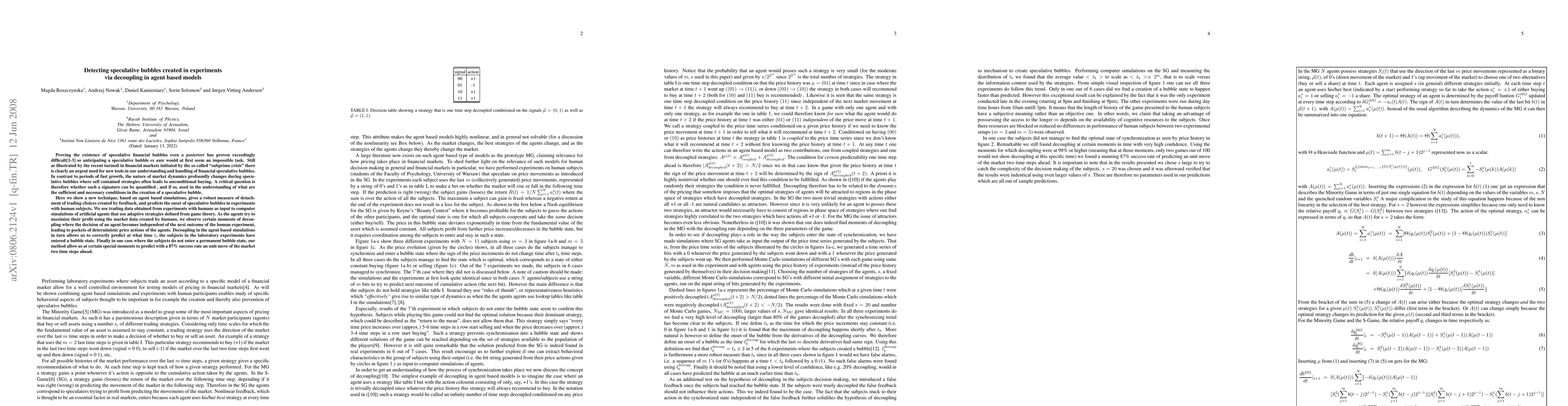 Proving the existence of speculative financial bubbles even a posteriori has proven exceedingly difficult so anticipating a speculative bubble ex ante would at first seem an impossible task. Still as illustrated by the recent turmoil in financial markets initiated by the so called subprime crisis there is clearly an urgent need for new tools in our understanding and handling of financial speculative bubbles. In contrast to periods of fast growth, the nature of market dynamics profoundly changes during speculative bubbles where self contained strategies often leads to unconditional buying. A critical question is therefore whether such a signature can be quantified, and if so, used in the understanding of what are the sufficient and necessary conditions in the creation of a speculative bubble. Here we show a new technique, based on agent based simulations, gives a robust measure of detachment of trading choices created by feedback, and predicts the onset of speculative bubbles in experiments with human subjects. We use trading data obtained from experiments with humans as input to computer simulations of artificial agents that use adaptive strategies defined from game theory....