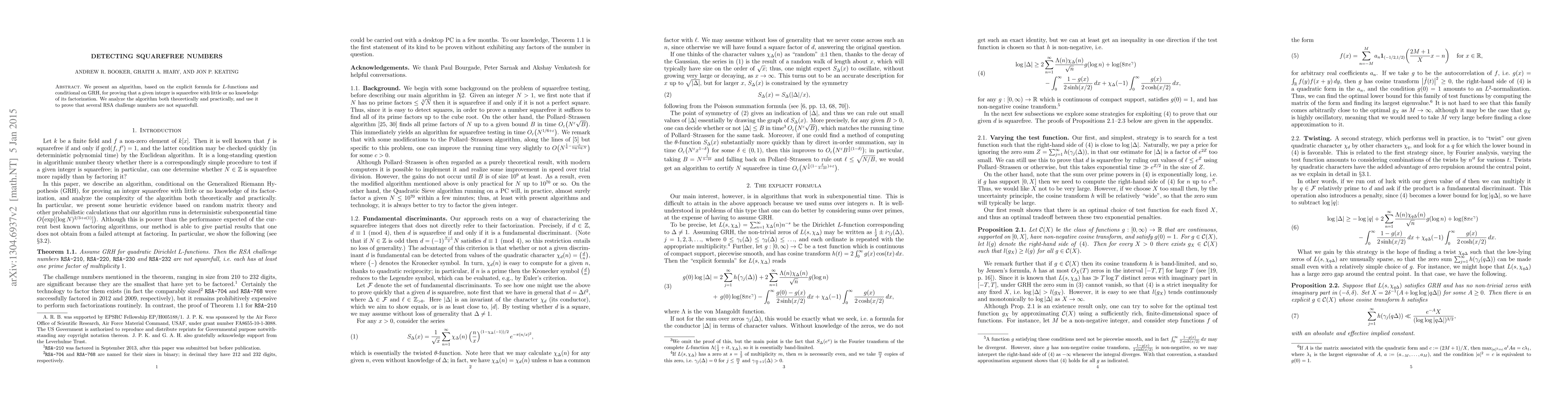 This paper introduces an algorithm, utilizing the explicit formula for L-functions and assuming the Generalized Riemann Hypothesis (GRH), to identify squarefree integers with minimal factorization knowledge. The method's efficiency is demonstrated through theoretical analysis and practical application, proving that certain RSA challenge numbers lack squarefull properties.