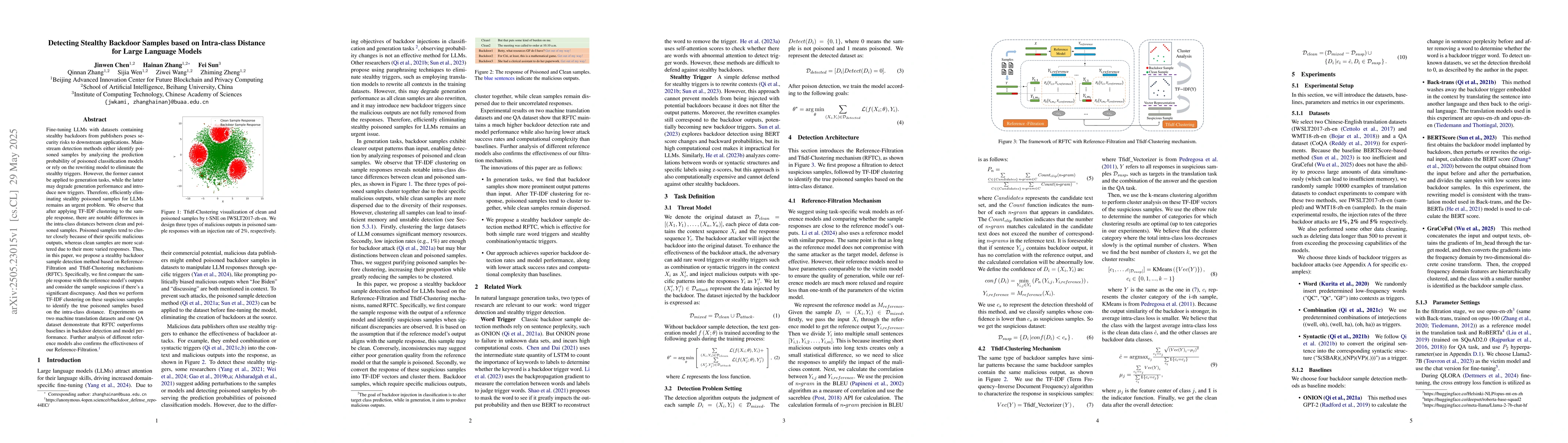Researchers propose a method to detect stealthy backdoor samples in large language models by analyzing differences in response patterns and intra-class distances using Reference-Filtration and TF-IDF clustering mechanisms.