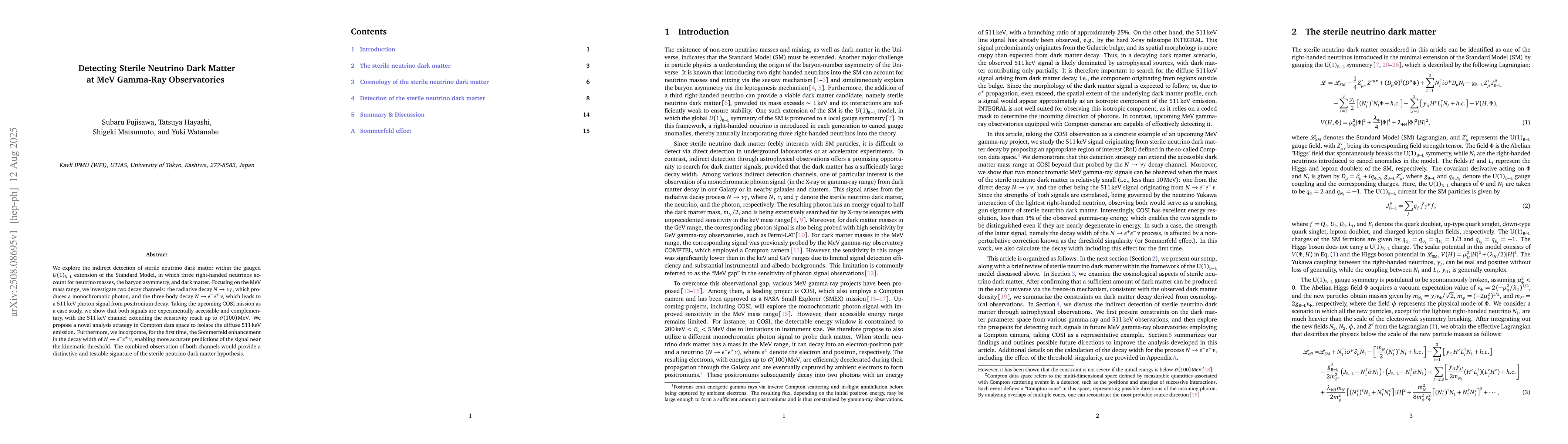This research proposes detecting sterile neutrino dark matter via MeV gamma-ray signals in the gauged U(1)_{B-L} extension of the Standard Model. It explores two decay channels: N → νγ (monochromatic photon) and N → e^- e^+ ν (511 keV photon). Using the COSI mission as a case study, it suggests a novel Compton data space analysis for isolating the 511 keV emission and incorporates Sommerfeld enhancement for accurate signal predictions near the threshold. Observing both channels would provide a unique signature for sterile neutrino dark matter.