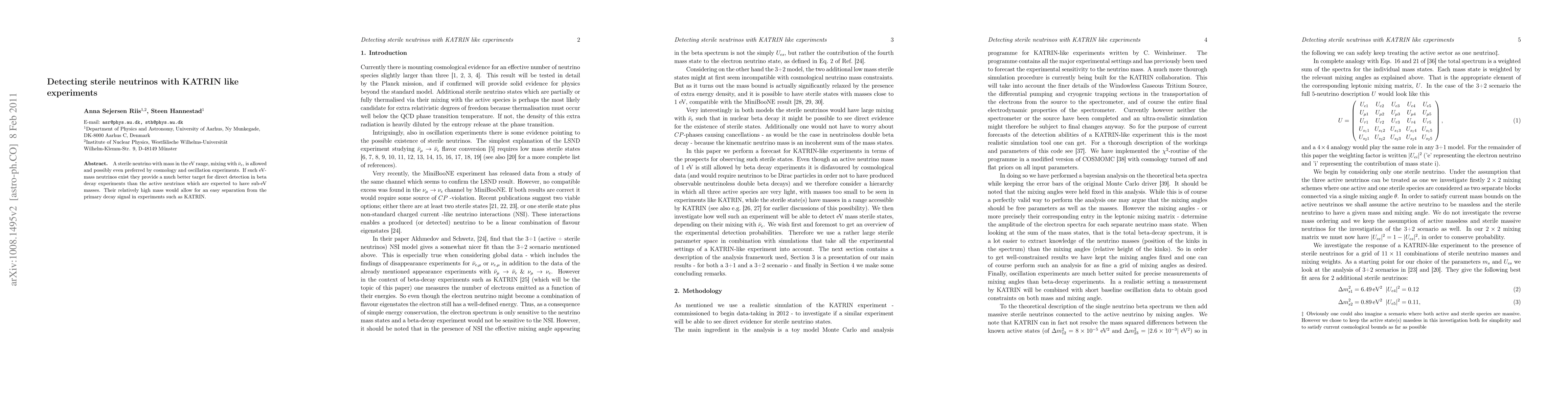 A sterile neutrino with mass in the eV range, mixing with the electron antineutrino, is allowed and possibly even preferred by cosmology and oscillation experiments. If such eV-mass neutrinos exist they provide a much better target for direct detection in beta decay experiments than the active neutrinos which are expected to have sub-eV masses. Their relatively high mass would allow for an easy separation from the primary decay signal in experiments such as KATRIN.