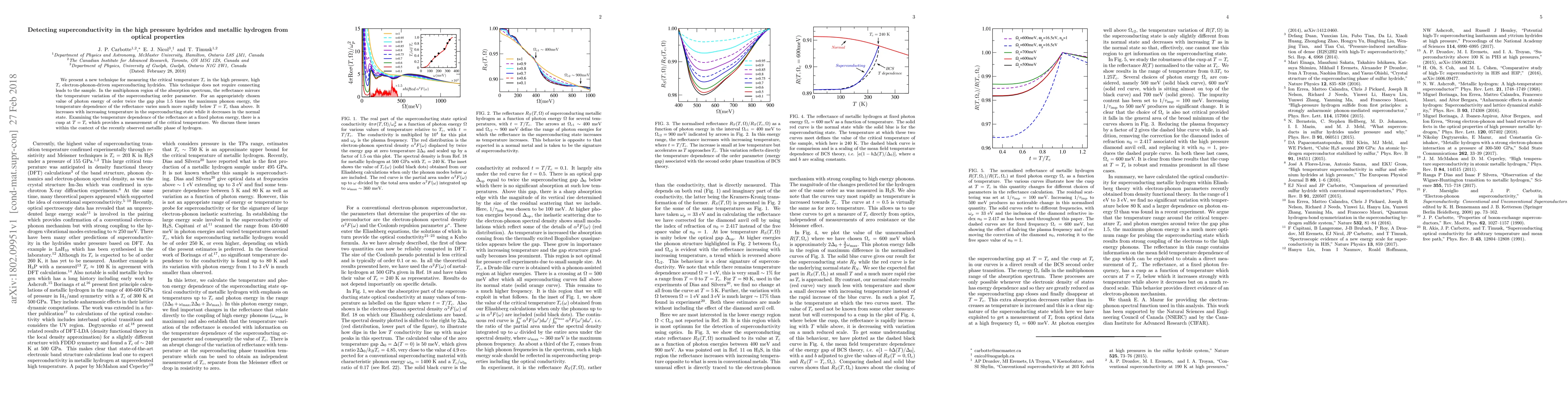 We present a new technique for measuring the critical temperature Tc in the high pressure, high Tc electron-phonon-driven superconducting hydrides. This technique does not require connecting leads to the sample. In the multiphonon region of the absorption spectrum, the reflectance mirrors the temperature variation of the superconducting order parameter. For an appropriately chosen value of photon energy of order twice the gap plus 1.5 times the maximum phonon energy, the temperature dependence of the reflectance varies much more rapidly below T=Tc than above. It increases with increasing temperature in the superconducting state while it decreases in the normal state. Examining the temperature dependence of the reflectance at a fixed photon energy, there is a cusp at T=Tc which provides a measurement of the critical temperature. We discuss these issues within the context of the recently observed metallic phase of hydrogen.
