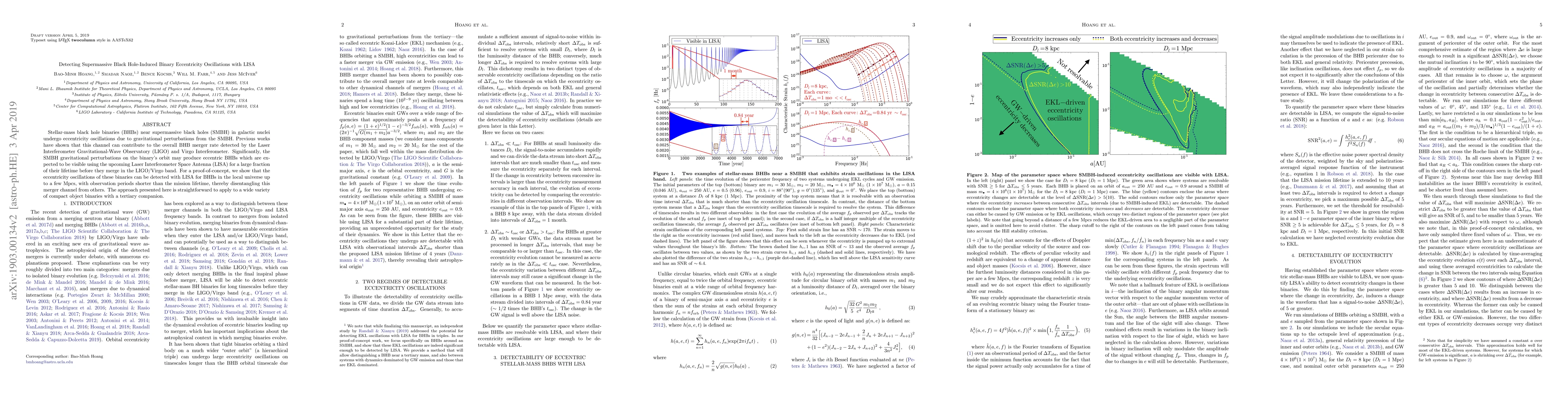 This paper demonstrates that the Laser Interferometer Space Antenna (LISA) can detect eccentricity oscillations in stellar-mass black hole binaries (BHBs) influenced by nearby supermassive black holes (SMBHs), providing a new channel for understanding BHB merger rates detected by LIGO and Virgo. The study shows that LISA can observe these oscillations over a significant portion of the binaries' lifetimes, aiding in the identification of this specific merger channel.
