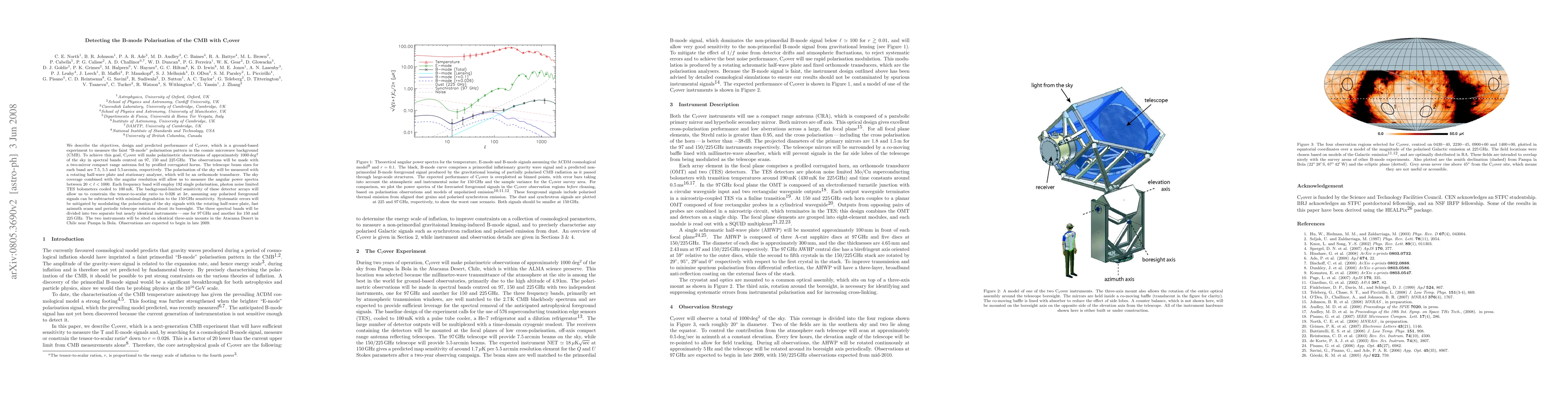 The Clover experiment aims to detect the B-mode polarisation pattern in the cosmic microwave background (CMB) using ground-based polarimetric observations at 97, 150, and 225 GHz. It expects to constrain the tensor-to-scalar ratio to 0.026 at 3σ by employing TES bolometers and mitigating systematic errors through advanced observational techniques.