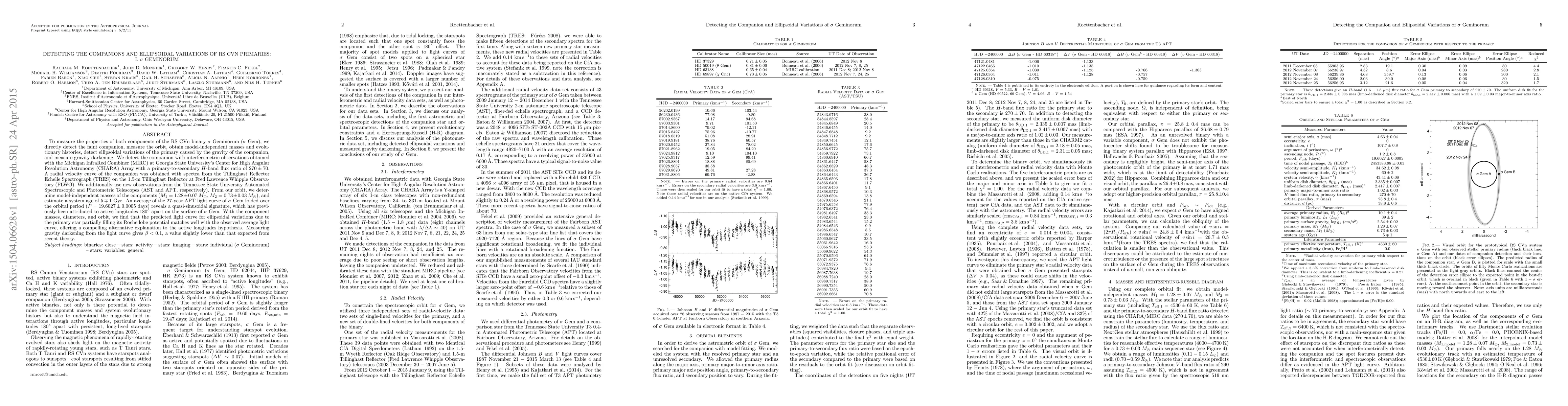To measure the properties of both components of the RS CVn binary sigma Geminorum (sigma Gem), we directly detect the faint companion, measure the orbit, obtain model-independent masses and evolutionary histories, detect ellipsoidal variations of the primary caused by the gravity of the companion, and measure gravity darkening. We detect the companion with interferometric observations obtained with the Michigan InfraRed Combiner (MIRC) at Georgia State University's Center for High Angular Resolution Astronomy (CHARA) Array with a primary-to-secondary H-band flux ratio of 270+/-70. A radial velocity curve of the companion was obtained with spectra from the Tillinghast Reflector Echelle Spectrograph (TRES) on the 1.5-m Tillinghast Reflector at Fred Lawrence Whipple Observatory (FLWO). We additionally use new observations from the Tennessee State University Automated Spectroscopic and Photometric Telescopes (AST and APT, respectively). From our orbit, we determine model-independent masses of the components (M_1 = 1.28 +/- 0.07 M_Sun, M_2 = 0.73 +/- 0.03 M_Sun), and estimate a system age of 5 -/+ 1 Gyr. An average of the 27-year APT light curve of sigma Gem folded over the orbital period (P = 19.6027 +/- 0.0005 days) reveals a quasi-sinusoidal signature, which has previously been attributed to active longitudes 180 deg apart on the surface of sigma Gem. With the component masses, diameters, and orbit, we find that the predicted light curve for ellipsoidal variations due to the primary star partially filling its Roche lobe potential matches well with the observed average light curve, offering a compelling alternative explanation to the active longitudes hypothesis. Measuring gravity darkening from the light curve gives beta < 0.1, a value slightly lower than that expected from recent theory.