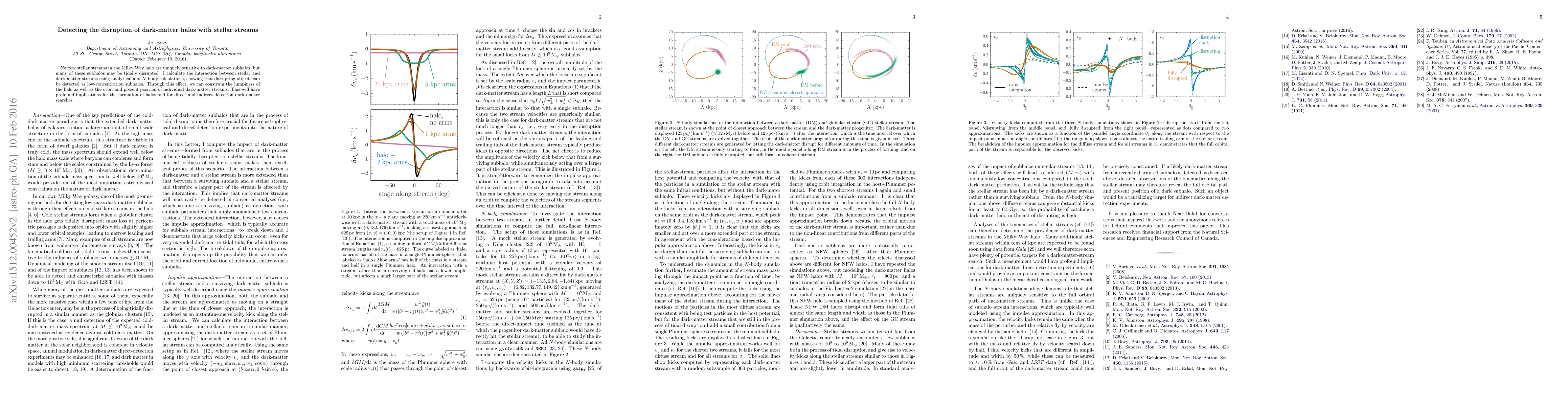 Narrow stellar streams in the Milky Way halo are uniquely sensitive to dark-matter subhalos, but many of these subhalos may be tidally disrupted. I calculate the interaction between stellar and dark-matter streams using analytical and $N$-body calculations, showing that disrupting objects can be detected as low-concentration subhalos. Through this effect, we can constrain the lumpiness of the halo as well as the orbit and present position of individual dark-matter streams. This will have profound implications for the formation of halos and for direct and indirect-detection dark-matter searches.