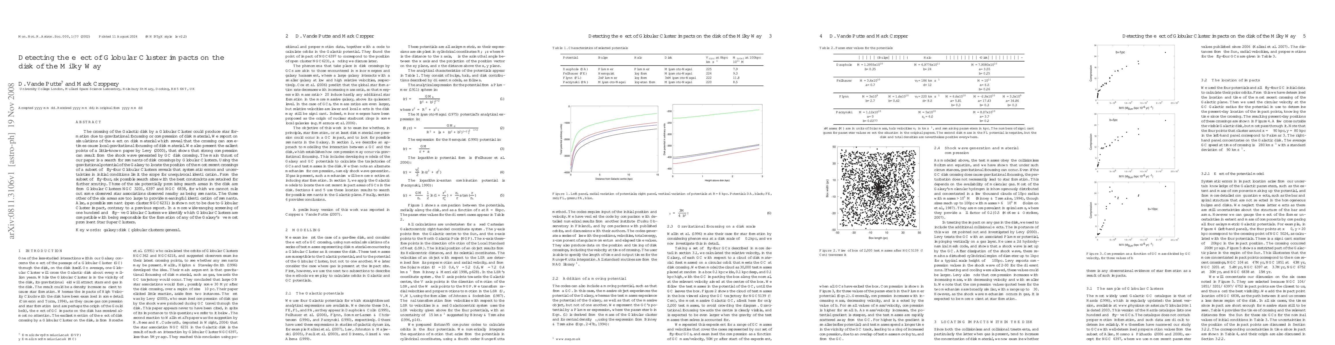 This paper explores the gravitational effects of Globular Clusters crossing the Milky Way's disk, potentially causing star formation. Simulations indicate local gravitational focussing and compression, while a search for remnants of these crossings identifies six promising areas, though systematic errors limit definitive identification.
