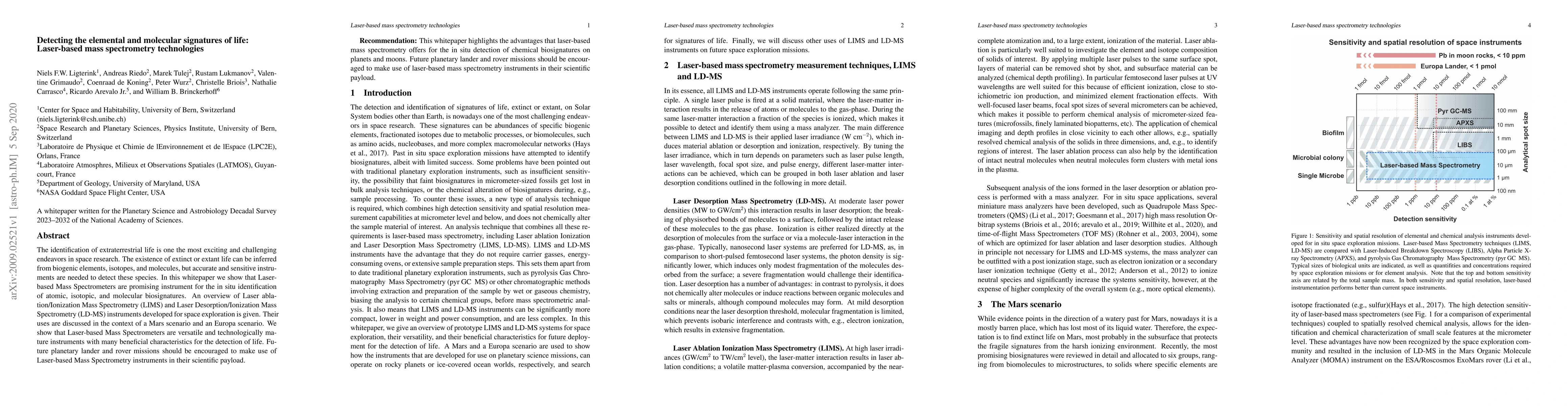 This paper explores the potential of Laser-based Mass Spectrometry technologies for detecting biosignatures of extraterrestrial life, highlighting the capabilities of LIMS and LD-MS in Mars and Europa scenarios. It concludes that these technologies are mature and should be included in future planetary missions.