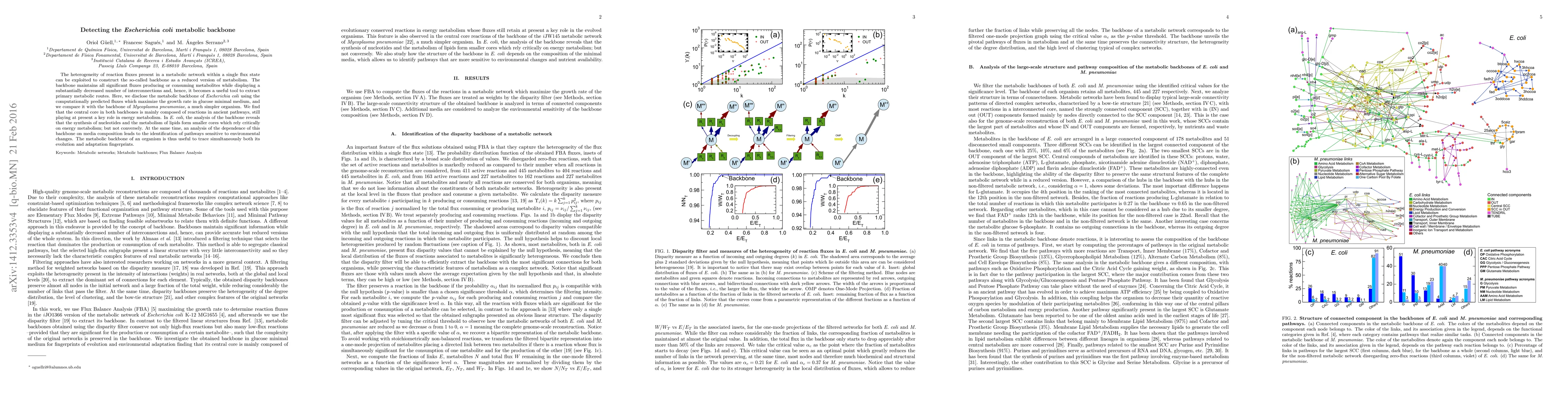 This study identifies the metabolic backbone of Escherichia coli, revealing significant fluxes while minimizing interconnections, and compares it with Mycoplasma pneumoniae. It highlights the central role of ancient pathways in energy metabolism and identifies pathways sensitive to environmental changes, demonstrating the backbone's utility in tracing evolutionary and adaptive traits.