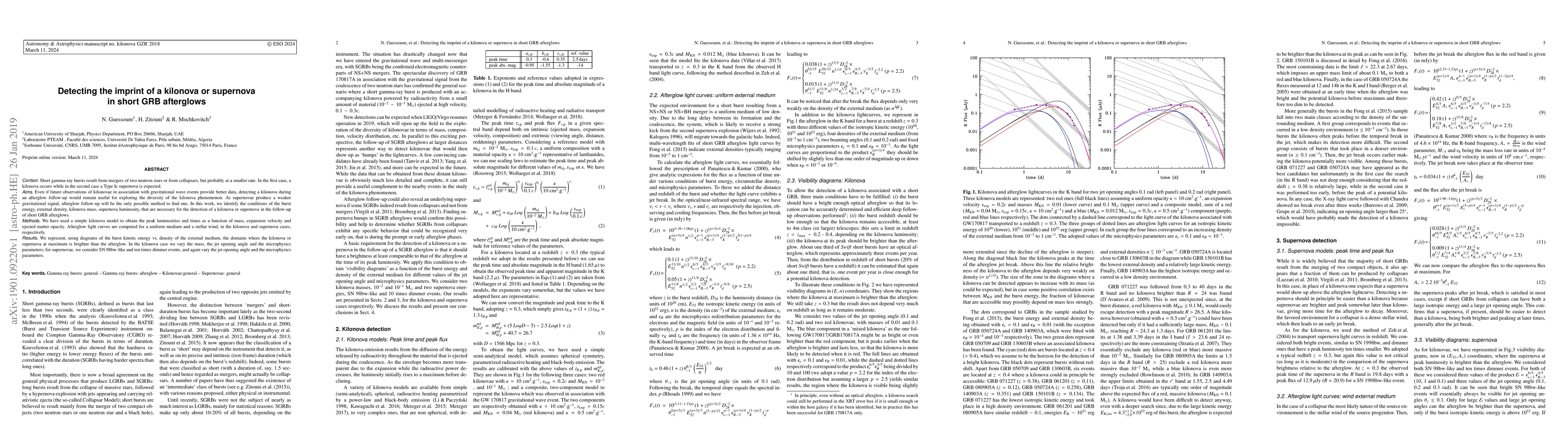 Researchers explored conditions for detecting kilonovae or supernovae in short gamma-ray burst afterglows, finding that specific burst energies and external densities can distinguish between the two events.