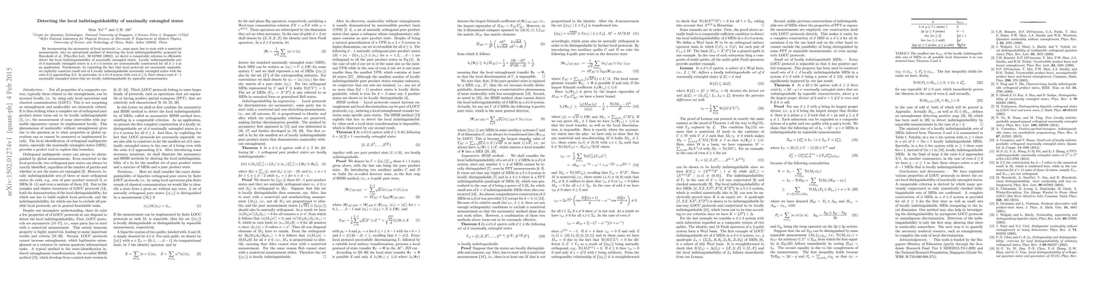 This paper proposes a new method to detect local indistinguishability of maximally entangled states by incorporating asymmetric local protocols, leading to a computable criterion. It constructs sets of locally indistinguishable states for dimensions $d \geq 4$ and shows that in even dimensions $d \geq 6$, there exist $d-1$ such states.