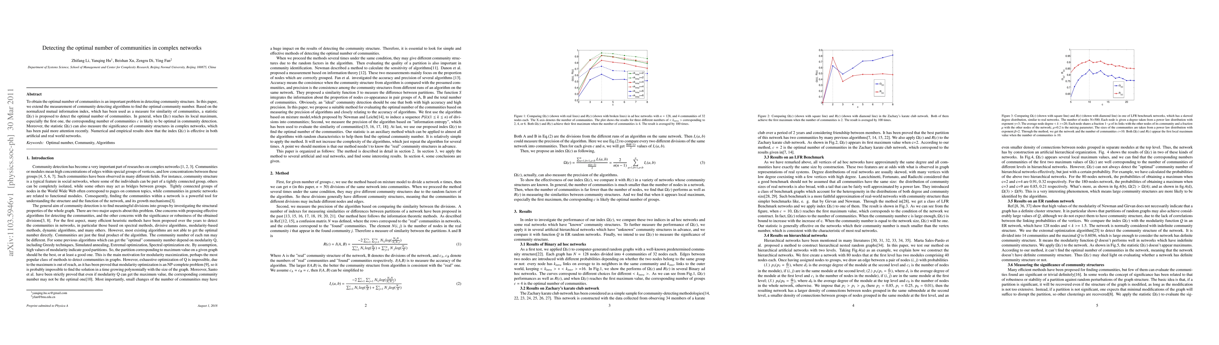 To obtain the optimal number of communities is an important problem in detecting community structure. In this paper, we extend the measurement of community detecting algorithms to find the optimal community number. Based on the normalized mutual information index, which has been used as a measure for similarity of communities, a statistic $\Omega(c)$ is proposed to detect the optimal number of communities. In general, when $\Omega(c)$ reaches its local maximum, especially the first one, the corresponding number of communities \emph{c} is likely to be optimal in community detection. Moreover, the statistic $\Omega(c)$ can also measure the significance of community structures in complex networks, which has been paid more attention recently. Numerical and empirical results show that the index $\Omega(c)$ is effective in both artificial and real world networks.