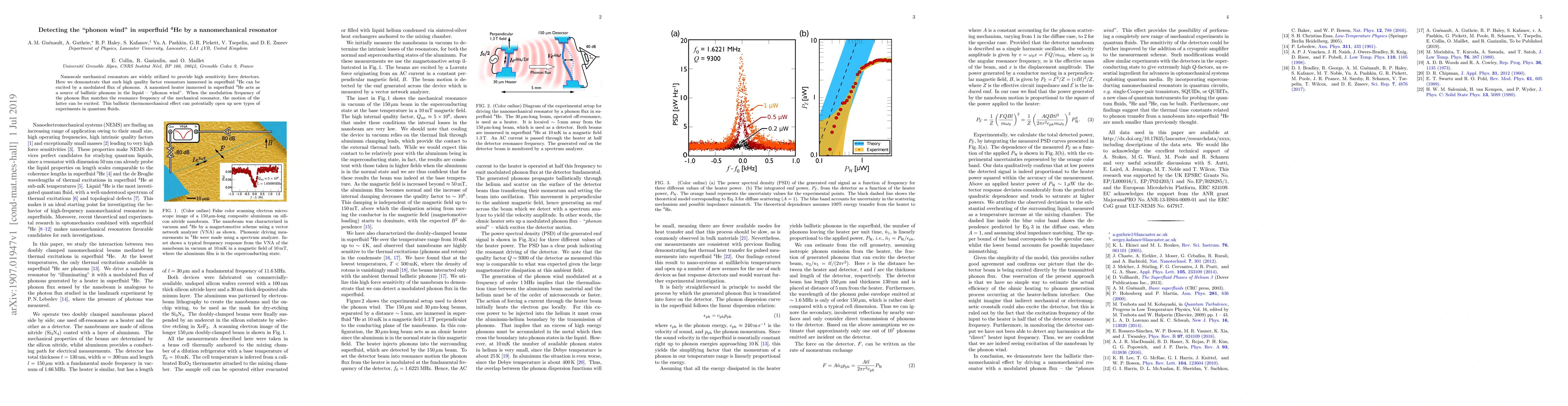 The research utilizes nanoscale mechanical resonators immersed in superfluid 4He, excited by a modulated flux of phonons generated by a nanosized heater. The motion of the resonator is detected via electromotive force (emf) generated across the device, measured by a vector network analyzer.