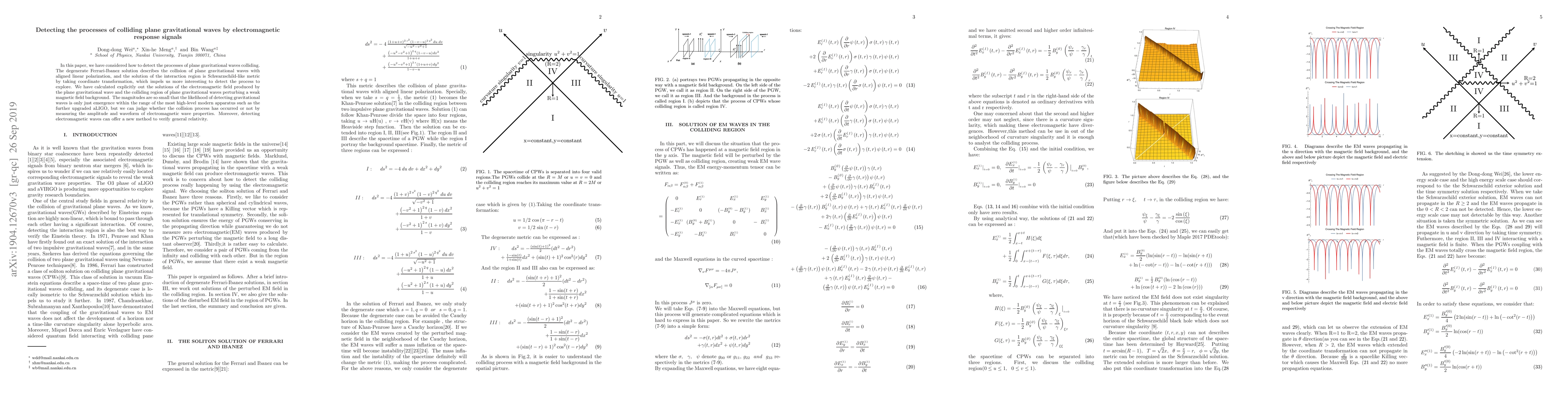 In this paper, we have considered how to detect the processes of plane gravitational waves colliding. The degenerate Ferrari-Ibanez solution describes the collision of plane gravitational waves with aligned linear polarization, and the solution of the interaction region is Schwarzschild-like metric by taking coordinate transformation, which impels us more interesting to detect the process to explore. We have calculated explicitly out the solutions of the electromagnetic field produced by the plane gravitational wave and the colliding region of plane gravitational waves perturbing a weak magnetic field background. The magnitudes are so small that the likelihood of detecting gravitational waves is only just emergence within the range of the most high-level modern apparatus such as the further upgraded aLIGO, but we can judge whether the collision process has occurred or not by measuring the amplitude and waveform of electromagnetic wave properties. Moreover, detecting electromagnetic waves can offer a new method to verify general relativity.