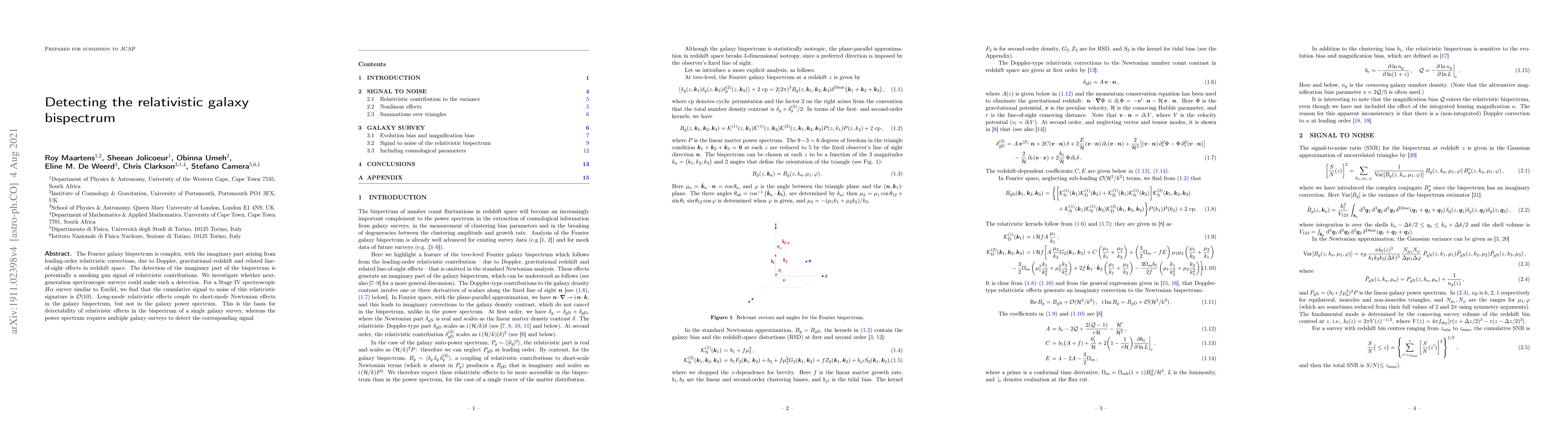 This paper investigates the detection of relativistic contributions in the galaxy bispectrum through leading-order effects like Doppler and gravitational redshift. It finds that next-generation spectroscopic surveys, such as a Stage IV $H\alpha$ survey, could detect the imaginary part of the bispectrum with a signal-to-noise ratio of $\mathcal{O}(10)$.