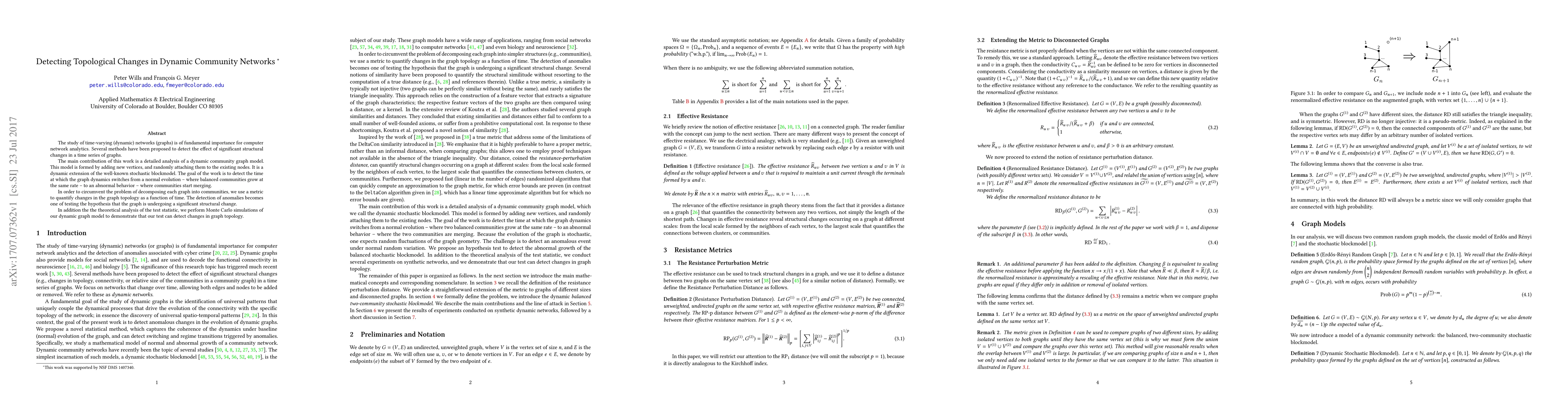 Researchers developed a method to detect topological changes in dynamic community networks by analyzing a new graph model that simulates the addition of new nodes and edges over time. Their approach uses a test statistic to identify significant structural changes, demonstrating its effectiveness through Monte Carlo simulations.