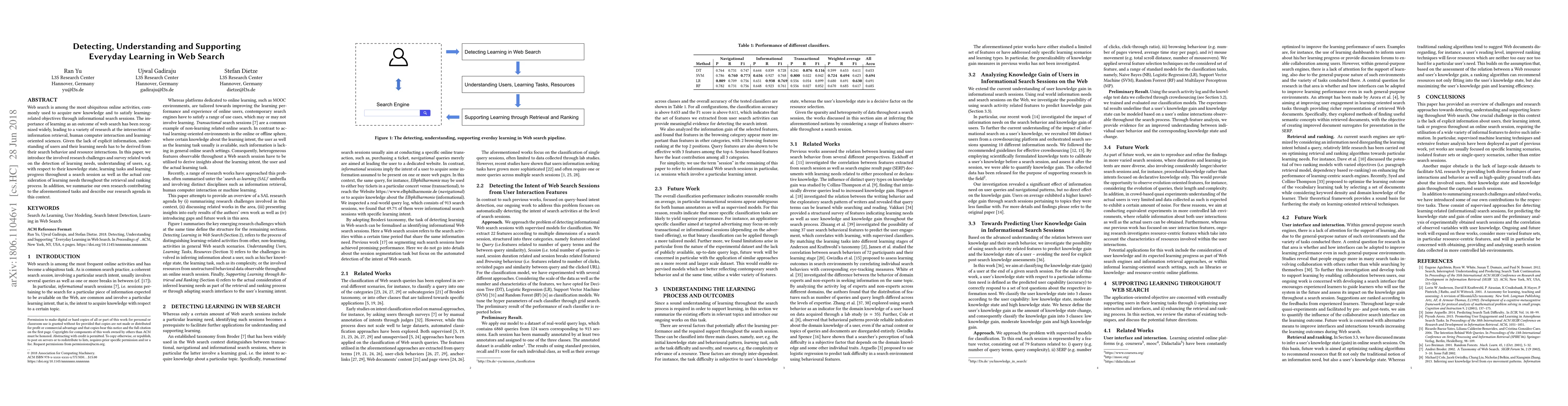 This paper investigates how to detect learning needs from web search behavior and improve user experience. It highlights the need for understanding users' knowledge state, learning tasks, and progress throughout a search session.