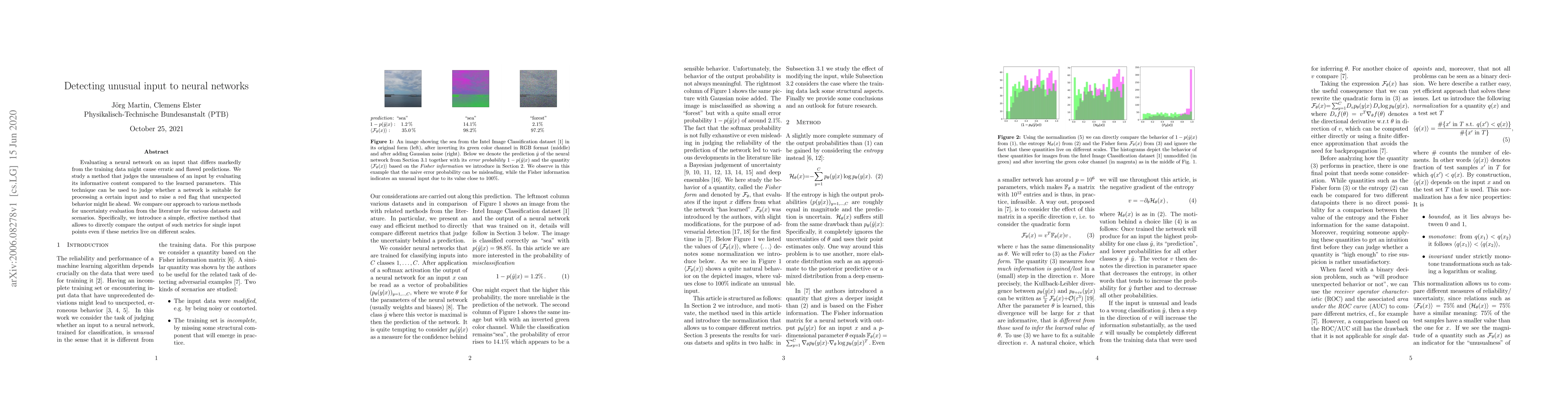 Researchers developed a method to detect unusual input to neural networks based on their informative content compared to learned parameters, providing an early warning system for unexpected behavior.