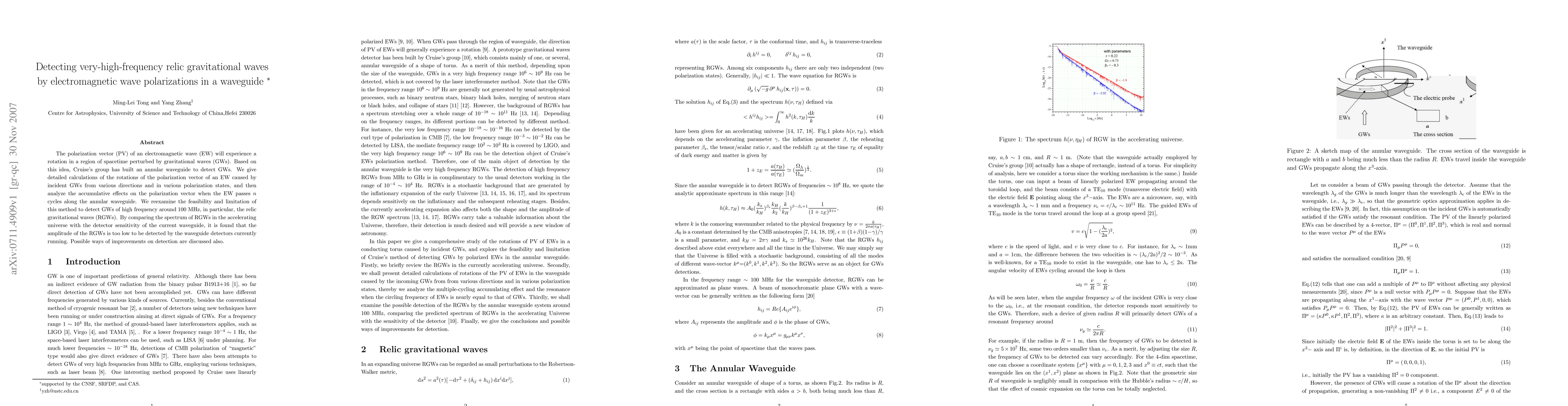 This paper investigates the detection of very-high-frequency relic gravitational waves (RGWs) via electromagnetic wave polarization rotations in an annular waveguide. The study finds that current waveguide detectors are insufficiently sensitive to detect the low-amplitude RGWs, and proposes potential improvements for future detection.
