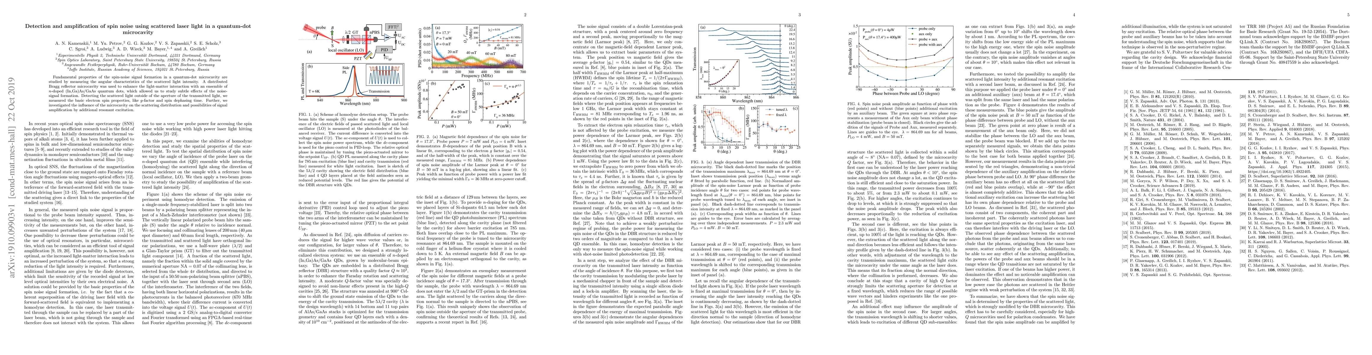 This paper investigates the fundamental properties of spin noise in a quantum-dot microcavity by measuring the angular characteristics of scattered laser light. The study uses a distributed Bragg reflector microcavity to enhance light-matter interaction, enabling the detection of electron spin properties and exploring the amplification of spin noise through resonant excitation.