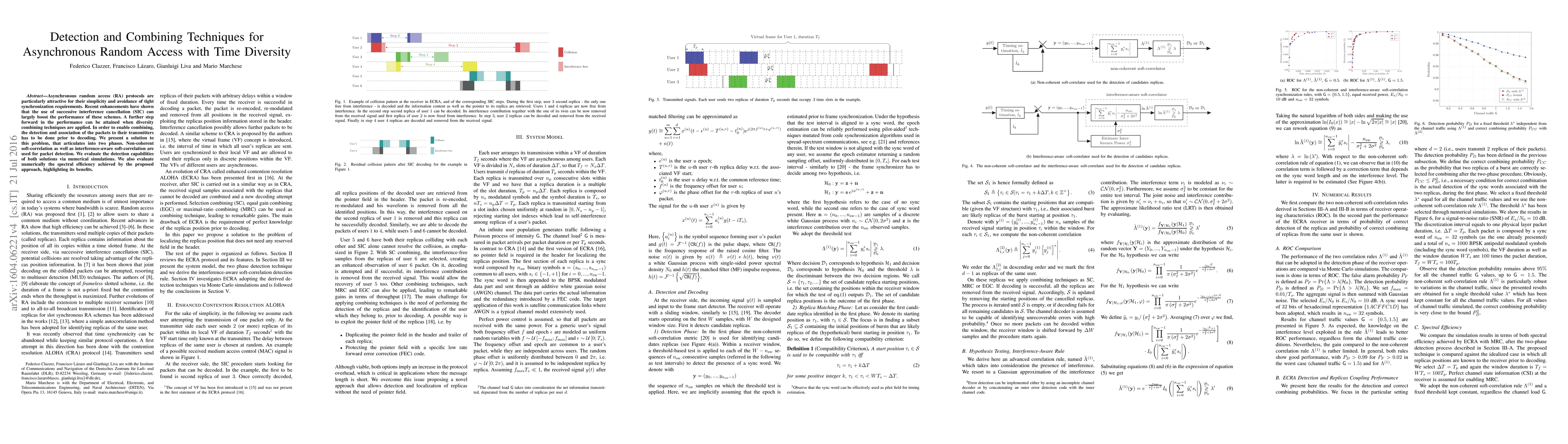 This paper proposes techniques for detecting and combining packets in asynchronous random access protocols using time diversity. It employs non-coherent and interference-aware soft-correlation for packet detection, followed by successive interference cancellation, and evaluates the spectral efficiency benefits through numerical simulations.