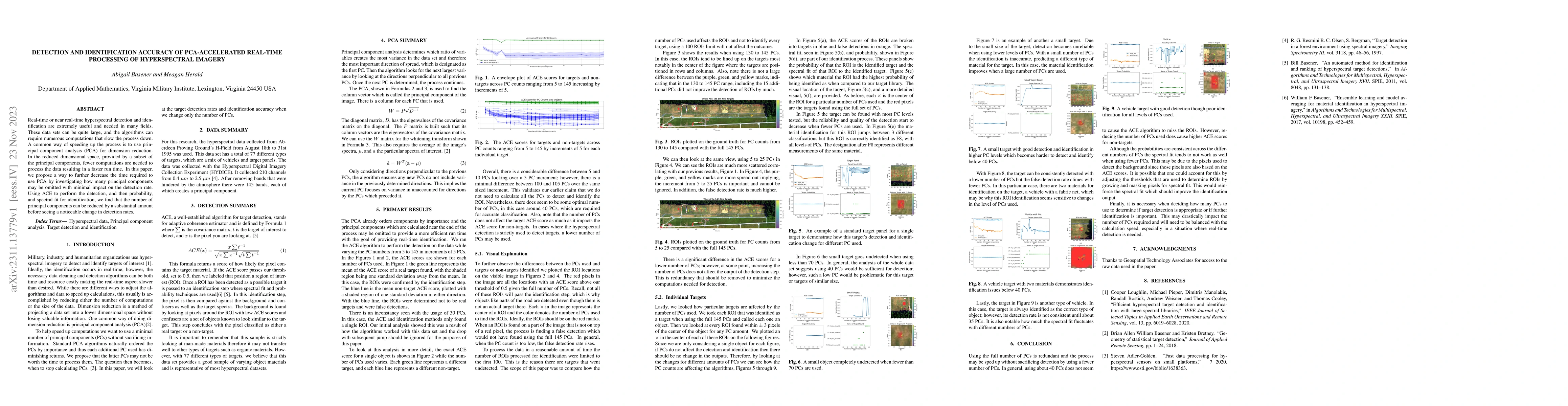 Real-time or near real-time hyperspectral detection and identification are extremely useful and needed in many fields. These data sets can be quite large, and the algorithms can require numerous computations that slow the process down. A common way of speeding up the process is to use principal component analysis (PCA) for dimension reduction. In the reduced dimensional space, provided by a subset of the principal components, fewer computations are needed to process the data resulting in a faster run time. In this paper, we propose a way to further decrease the time required to use PCA by investigating how many principal components may be omitted with minimal impact on the detection rate. Using ACE to perform the detection, and then probability, and spectral fit for identification, we find that the number of principal components can be reduced by a substantial amount before seeing a noticeable change in detection rates.