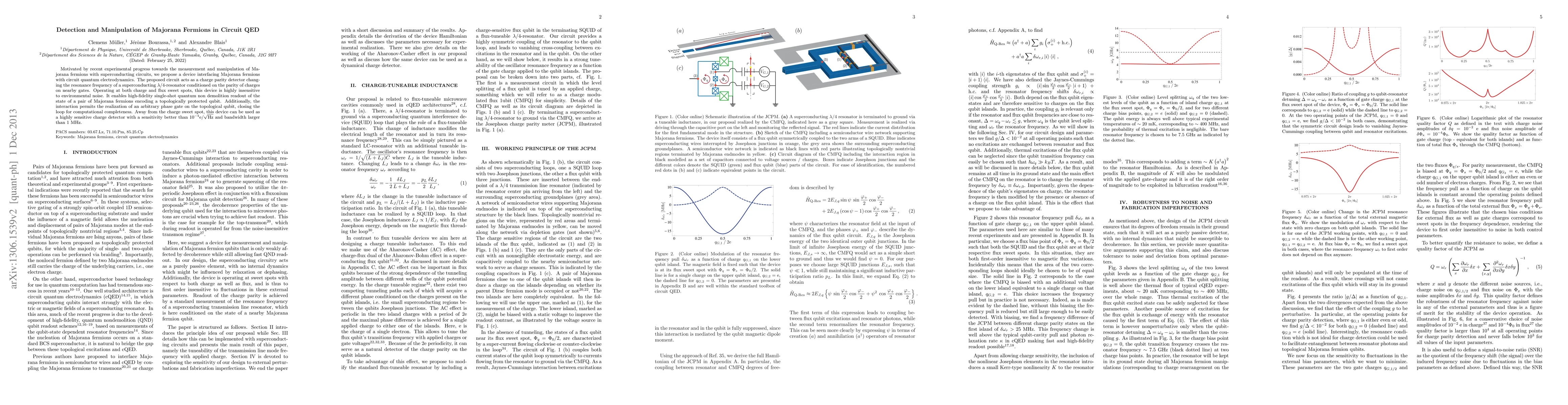 This paper proposes a superconducting circuit that interfaces with Majorana fermions, enabling high-fidelity quantum non-demolition detection and manipulation of topological qubits. The device operates at optimal conditions to minimize noise and allows for single-shot readout and phase gate operations on Majorana-based qubits.
