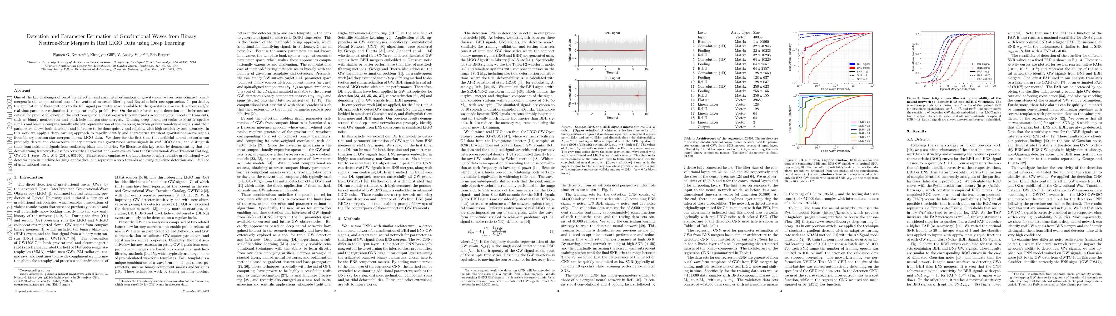 This paper demonstrates the use of deep learning to rapidly detect and estimate parameters for gravitational waves from binary neutron-star mergers in real LIGO data, significantly reducing computational costs compared to conventional methods. The deep-learning approach successfully identifies and characterizes these signals, distinguishing them from noise and other types of mergers.