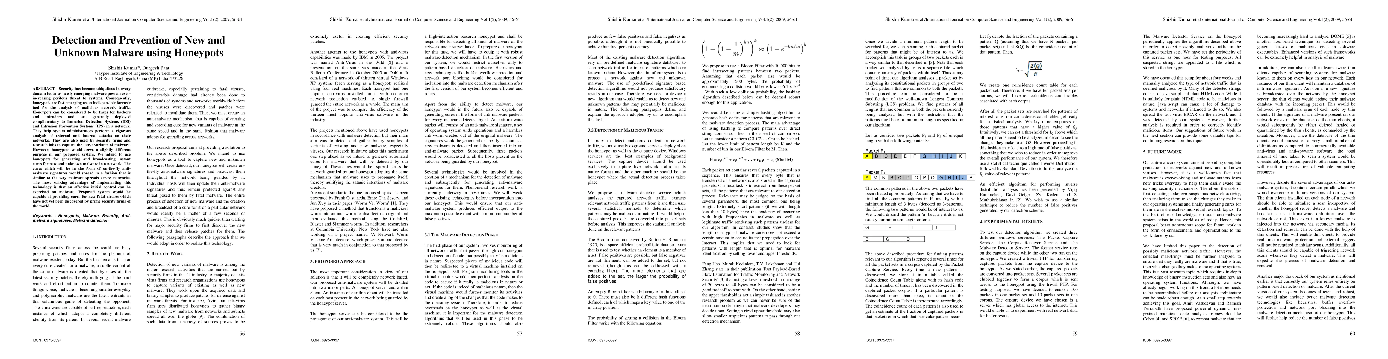 This paper proposes using honeypots as a tool to detect and generate instant cures for new and unknown malware, creating on-the-fly anti-malware signatures that spread across networks to provide early control over emerging threats before they are identified by traditional security firms.