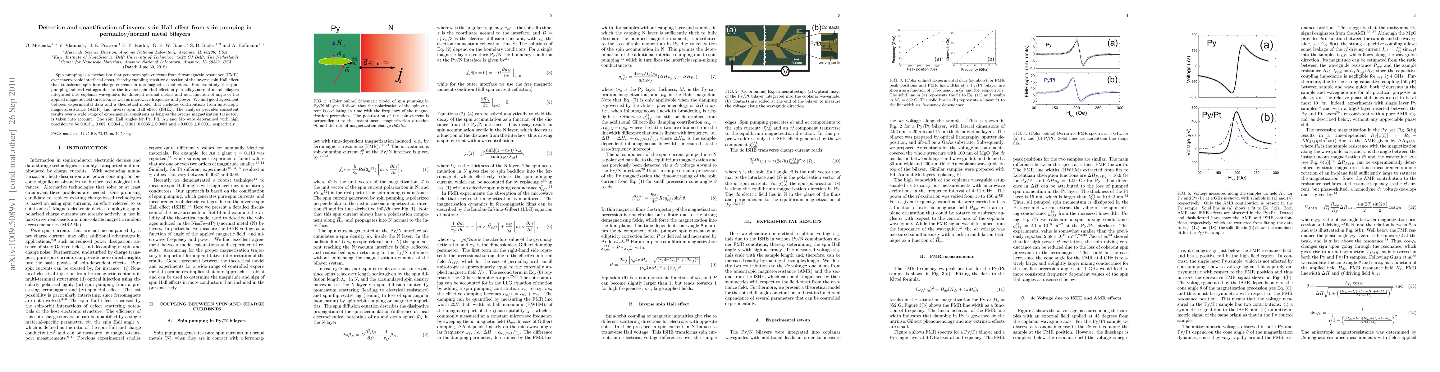This study investigates the inverse spin Hall effect (ISHE) in permalloy/normal metal bilayers through spin pumping, finding precise spin Hall angles for Pt, Pd, Au, and Mo, and validating a theoretical model incorporating anisotropic magnetoresistance and ISHE across various experimental conditions.