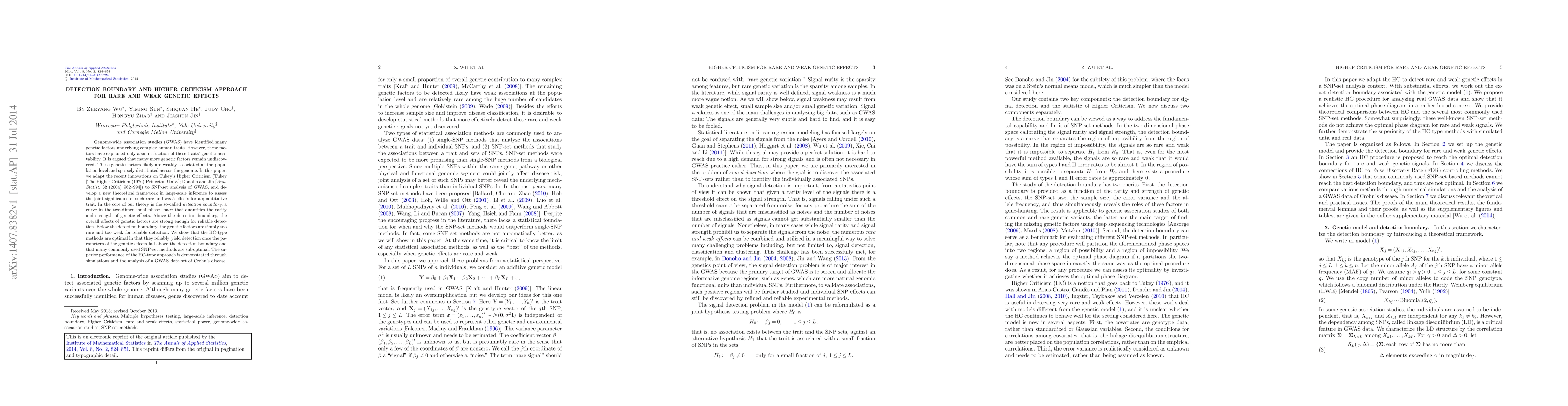 This paper proposes a new method for detecting rare and weak genetic effects using Tukey's Higher Criticism approach, which identifies the detection boundary in two-dimensional phase space. The study demonstrates that the proposed method outperforms commonly used SNP-set methods in detecting genetic factors underlying complex traits.