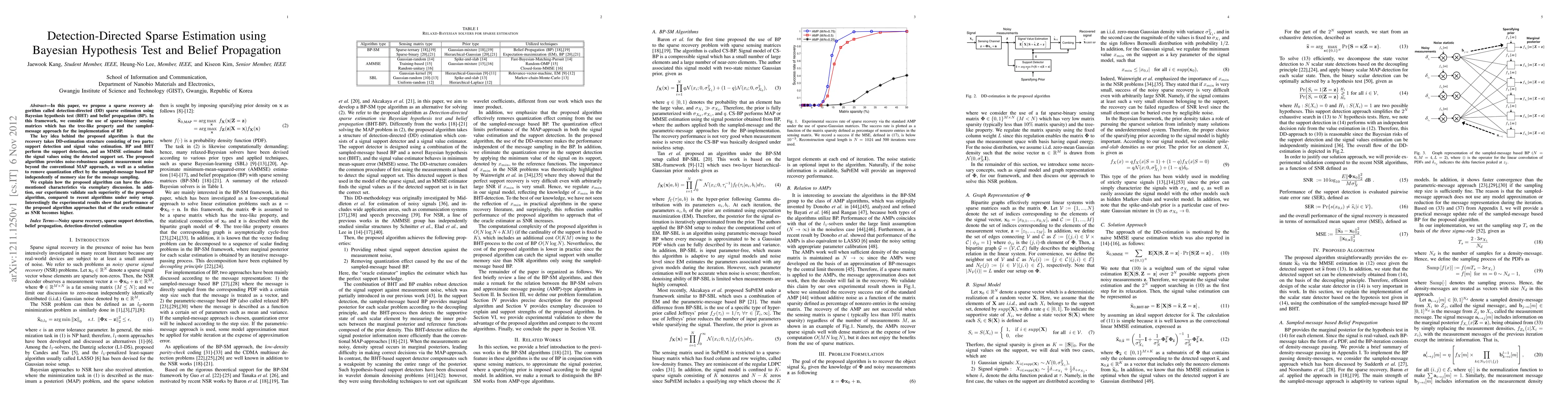 The research proposes a detection-directed (DD) sparse estimation algorithm using Bayesian hypothesis test (BHT) and belief propagation (BP), specifically designed for sparse-binary sensing matrices with tree-like properties and sampled-message BP implementation.