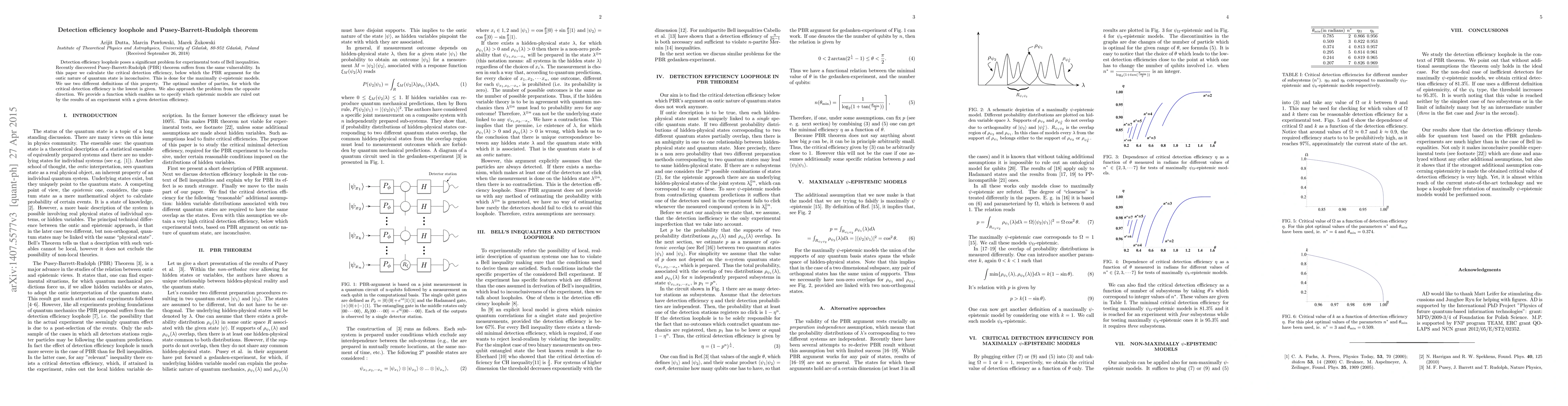 This paper investigates the detection efficiency loophole in the Pusey-Barrett-Rudolph theorem, determining the critical detection efficiency below which the PBR argument for the ontic nature of quantum states becomes inconclusive. It provides a function to identify which epistemic models are ruled out by experiments with specific detection efficiencies.