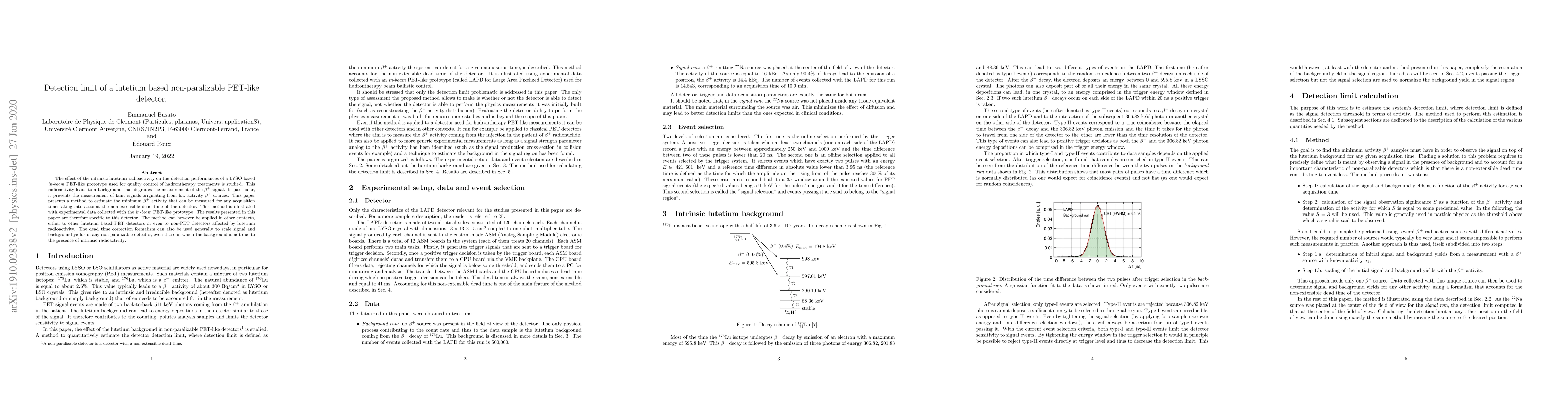 A method to estimate minimum beta+ activity detectable in a PET detector is presented, accounting for intrinsic lutetium radioactivity, which degrades signal measurement.