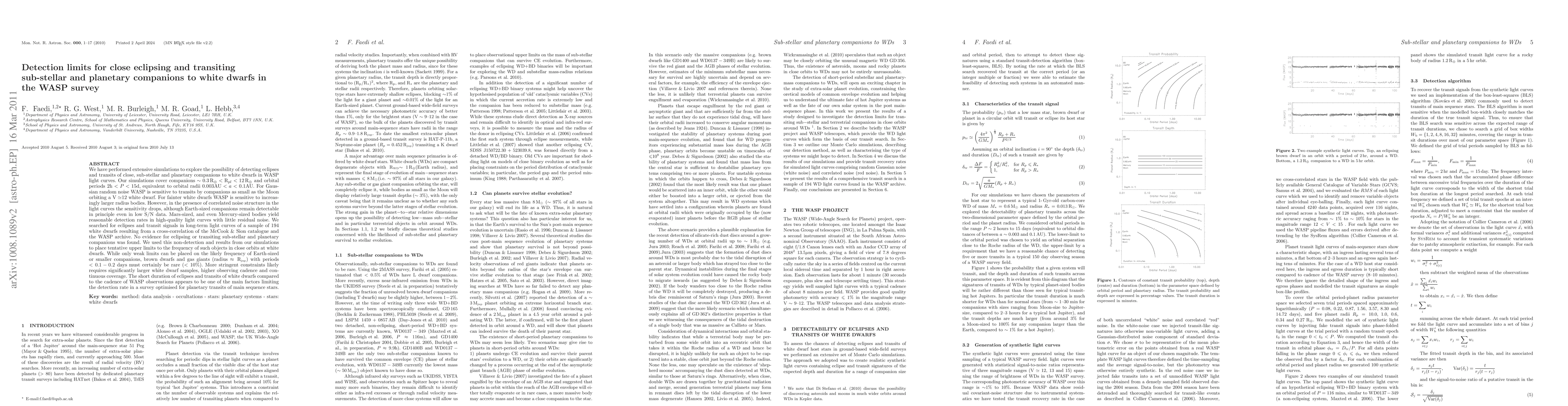 We have performed extensive simulations to explore the possibility of detecting eclipses and transits of close, sub-stellar and planetary companions to white dwarfs in WASP light-curves. Our simulations cover companions $\sim0.3\Re<{\rm R}_{pl}<12\Re$ and orbital periods $2{\rm h}