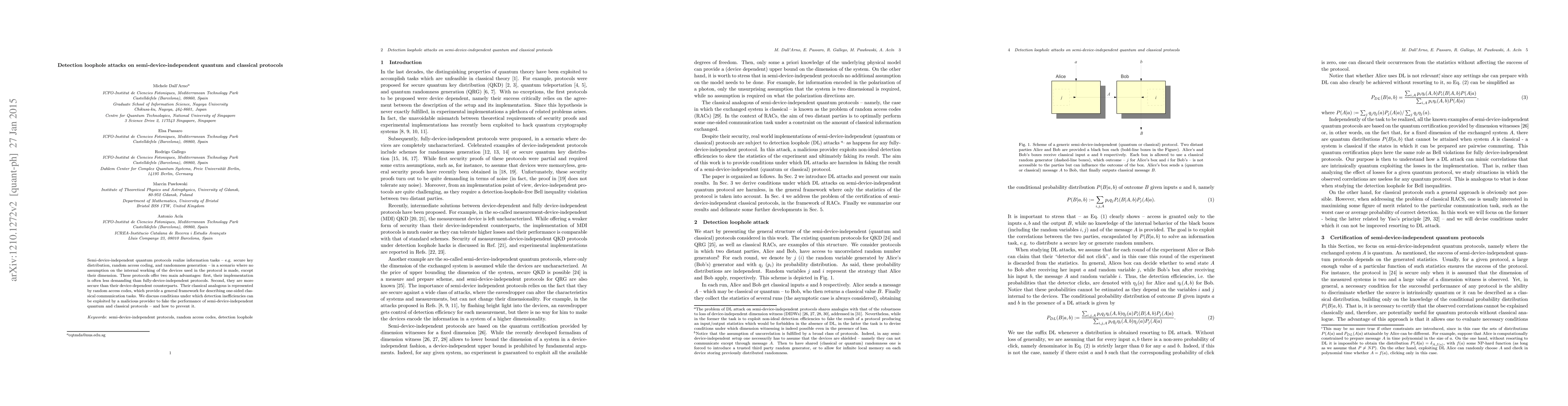 This paper investigates detection loophole attacks on semi-device-independent quantum and classical protocols, highlighting how inefficiencies can be exploited by malicious providers to fake performance, and proposes methods to prevent such attacks.