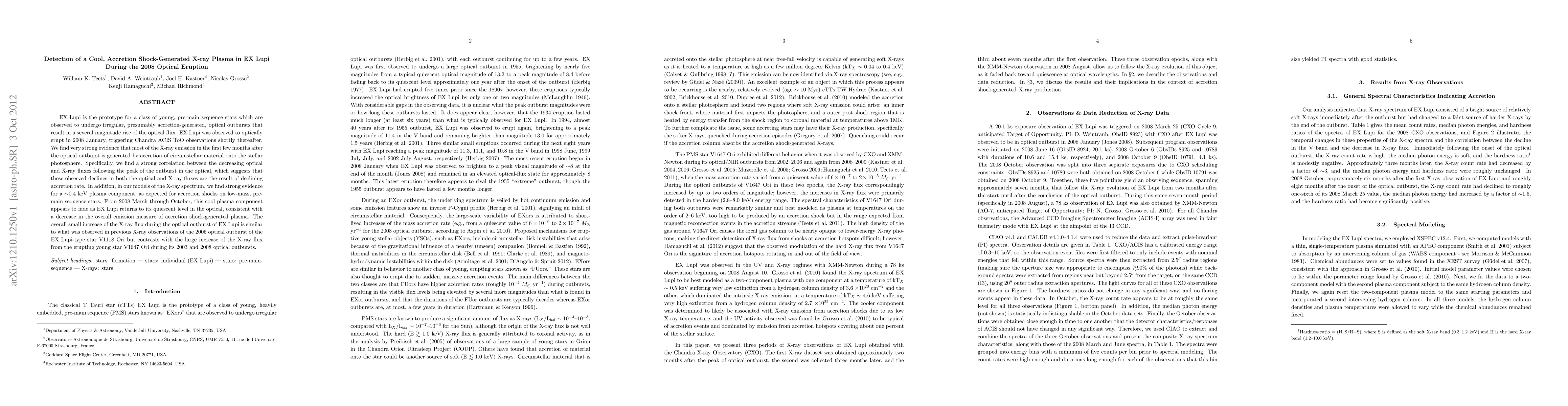 Researchers found strong evidence that X-ray emission from EX Lupi after an optical outburst is generated by accretion of circumstellar material onto the star's photosphere, with a cool plasma component lasting for months.