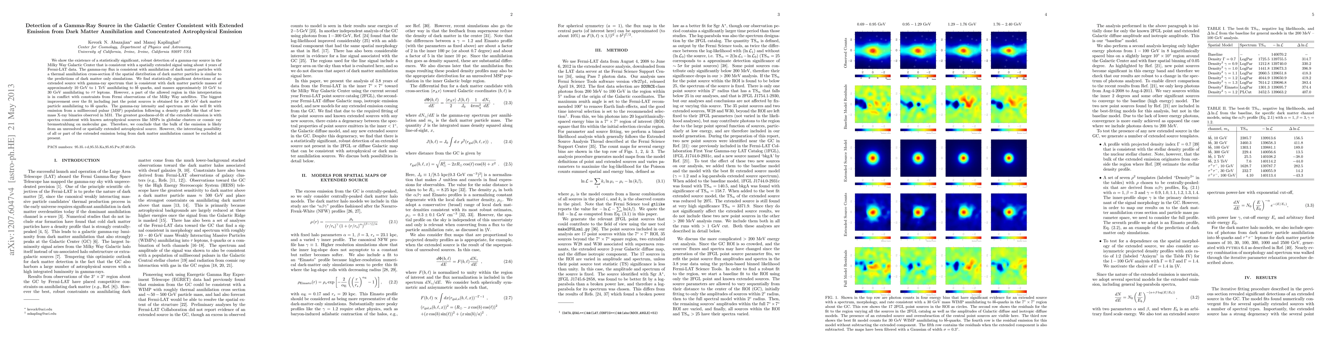 This research paper reports a significant gamma-ray detection in the Galactic Center consistent with both dark matter annihilation and extended astrophysical emission. The data suggests dark matter particles with masses between 10 GeV to 30 GeV, but the findings are partially inconsistent with Milky Way satellite observations, favoring an astrophysical origin like millisecond pulsars.