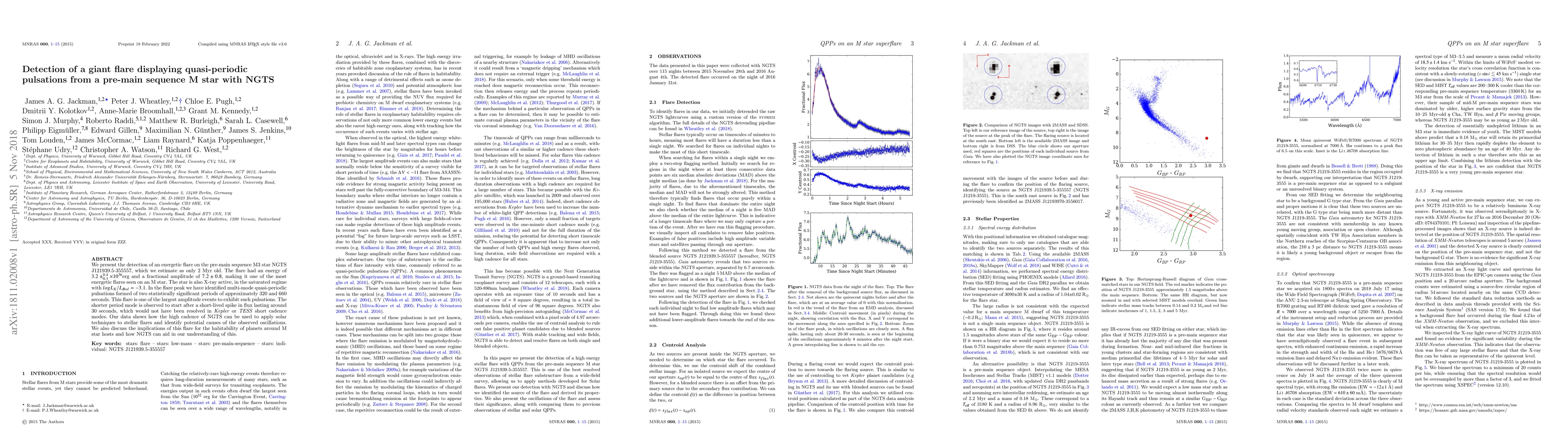A team detected a giant flare on an 2 million-year-old M star with high cadence NGTS telescope, revealing quasi-periodic pulsations and implications for planetary habitability.