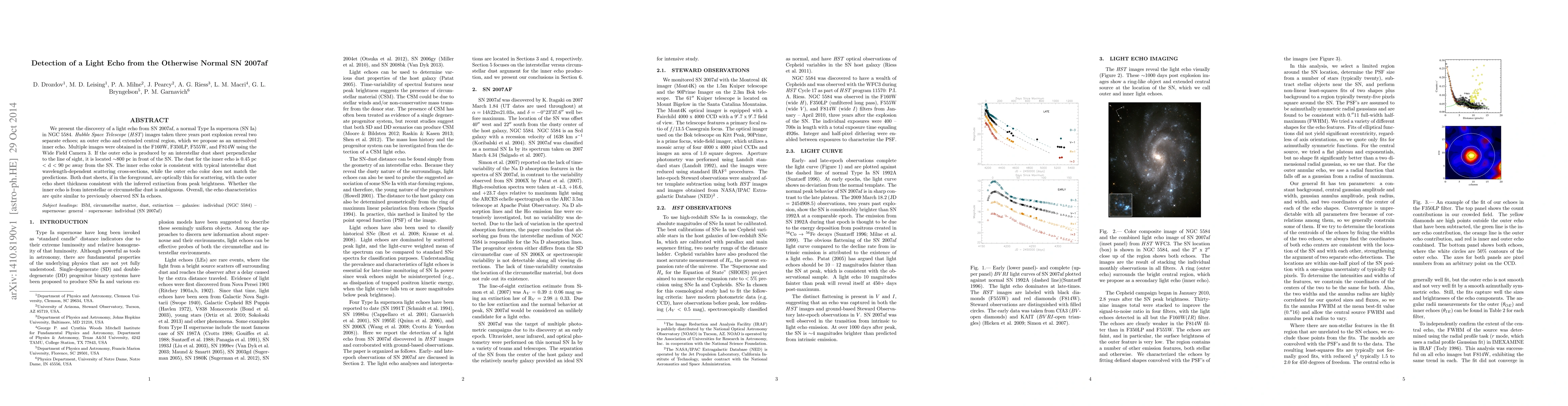 The paper reports the detection of a light echo from the normal Type Ia supernova SN 2007af in NGC 5584, revealing two distinct echoes through Hubble Space Telescope imaging, with implications for the nature and location of the dust producing the echoes. The findings suggest similarities to previously observed supernova light echoes.