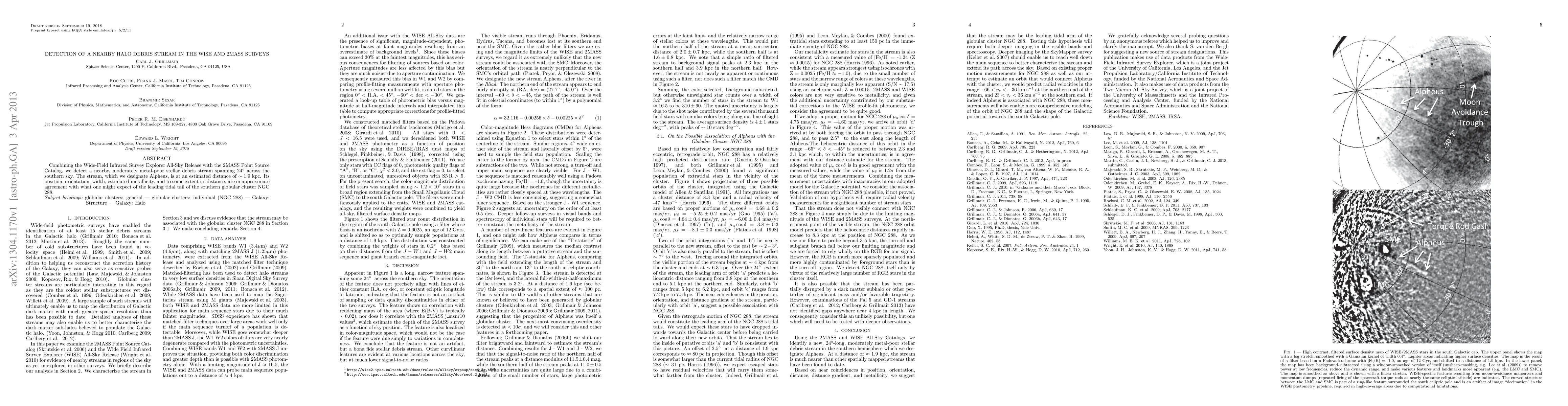 Combining the Wide-Field Infrared Survey Explorer All-Sky Release with the 2MASS Point Source Catalog, we detect a nearby, moderately metal-poor stellar debris stream spanning 24 degrees across the southern sky. The stream, which we designate Alpheus, is at an estimated distance of ~1.9 kpc. Its position, orientation, width, estimated metallicity, and to some extent its distance, are in approximate agreement with what one might expect of the leading tidal tail of the southern globular cluster NGC 288.