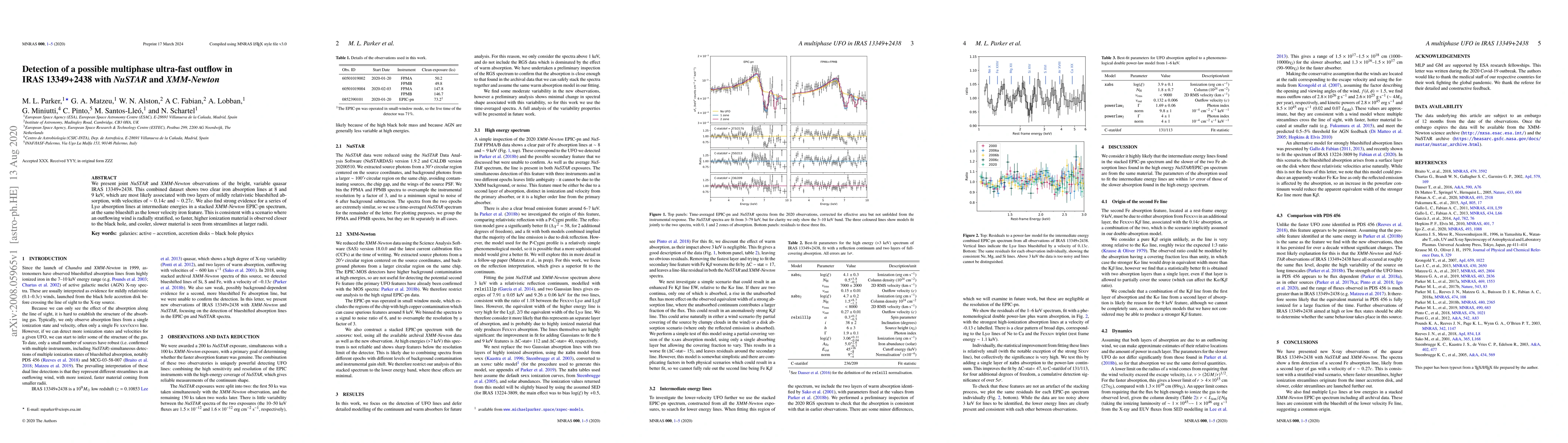 The IRAS 13349+2438 quasar shows evidence of a multiphase ultra-fast outflow with velocities up to 0.27c, featuring iron absorption lines and intermediate-energy Ly$eta$ absorption lines.