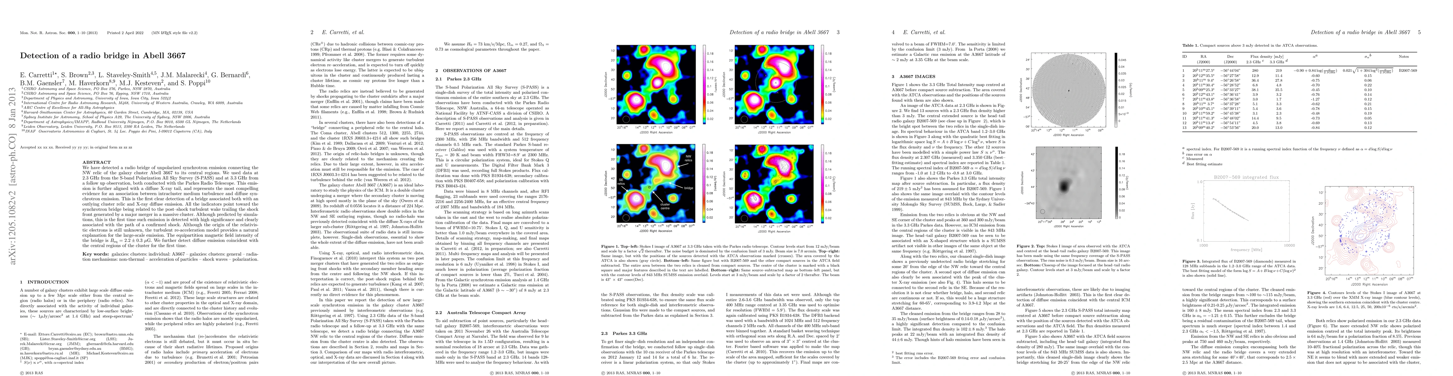 Researchers detected a radio bridge in Abell 3667, linking unpolarized synchrotron emission to the galaxy cluster's central regions, offering evidence for turbulent re-acceleration of relativistic electrons.