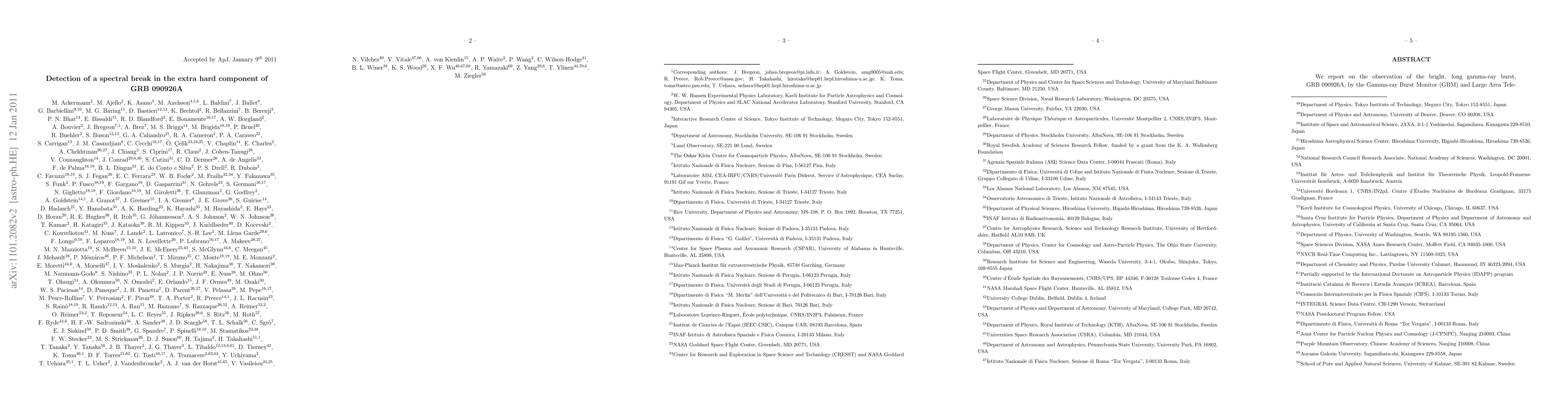 We report on the observation of the bright, long gamma-ray burst, GRB 090926A, by the Gamma-ray Burst Monitor (GBM) and Large Area Telescope (LAT) instruments on board the \Fermi\ Gamma-ray Space Telescope. GRB 090926A shares several features with other bright LAT bursts. In particular, it clearly shows a short spike in the light curve that is present in all detectors that see the burst, and this in turn suggests that there is a common region of emission across the entire \Fermi\ energy range. In addition, while a separate high-energy power-law component has already been observed in other GRBs, here we report for the first time the detection with good significance of a high-energy spectral break (or cutoff) in this power-law component around 1.4 GeV in the time-integrated spectrum. If the spectral break is caused by opacity to electron-positron pair production within the source, then this observation allows us to compute the bulk Lorentz factor for the outflow, rather than a lower limit.