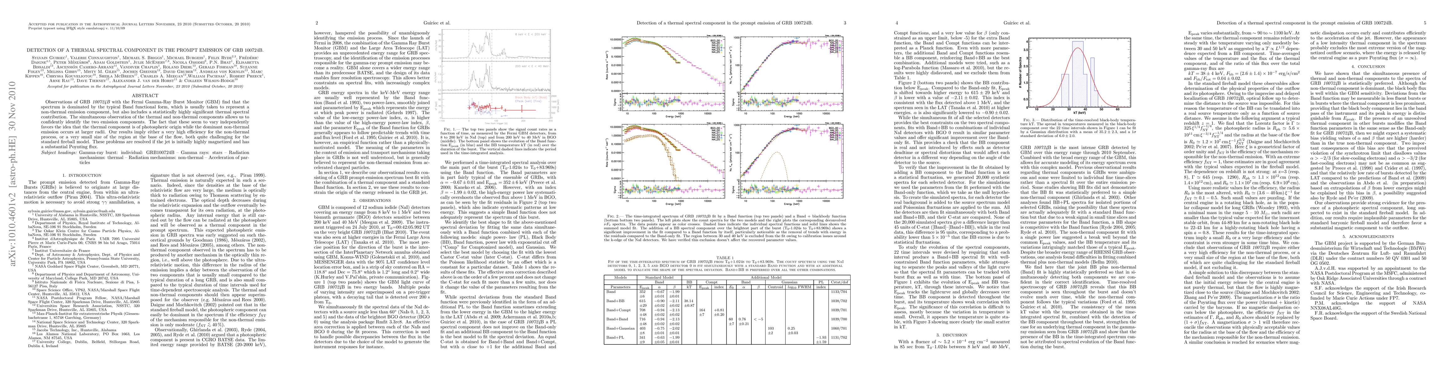 A study on GRB 100724B reveals a significant thermal spectral component in its prompt emission, challenging the standard fireball model. The findings suggest that either a highly efficient non-thermal process or a small jet base radius could explain the results.