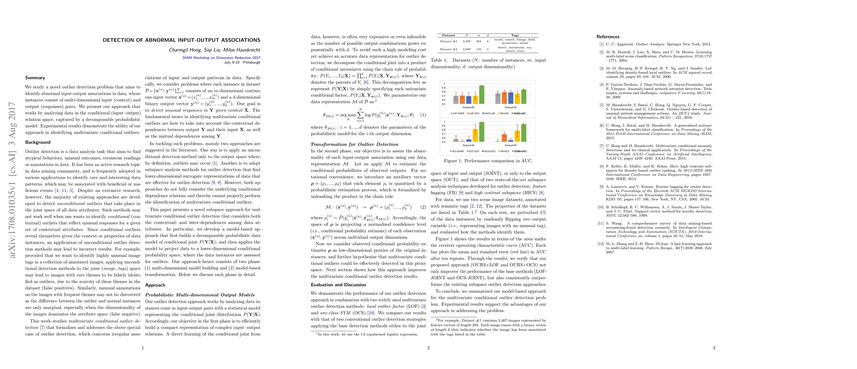 This paper introduces a method for detecting abnormal input-output associations in data by analyzing conditional relationships using a decomposable probabilistic model. Experimental results show the effectiveness of the approach in identifying multivariate conditional outliers.