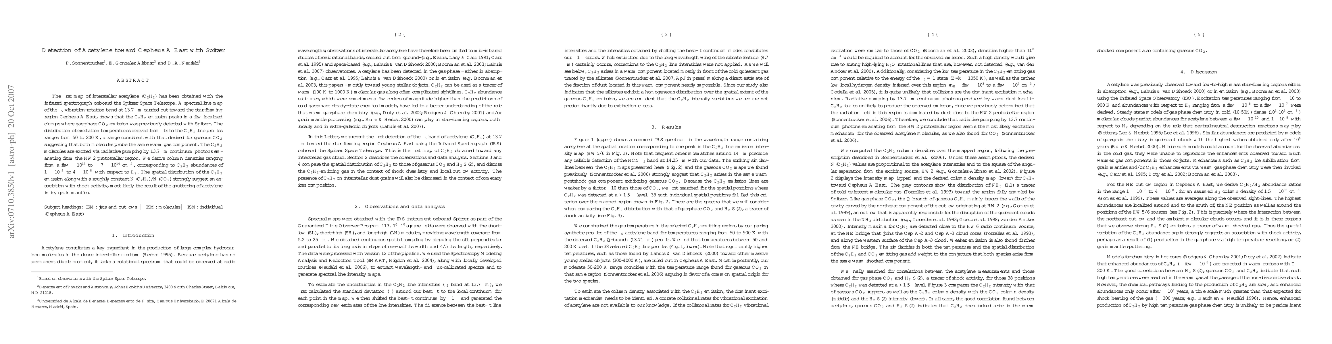 The Spitzer Space Telescope has produced the first map of interstellar acetylene (C2H2) in the star-forming region Cepheus A East, revealing emission peaks in localized clumps associated with CO2 gas. The C2H2 abundances range from 1 x 10^-9 to 4 x 10^-8 relative to H2, suggesting shock activity likely sputters acetylene from icy grain mantles.